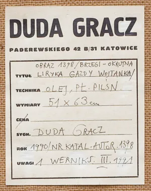 na odwrocie na płycie nalepka autorska z danymi obrazu