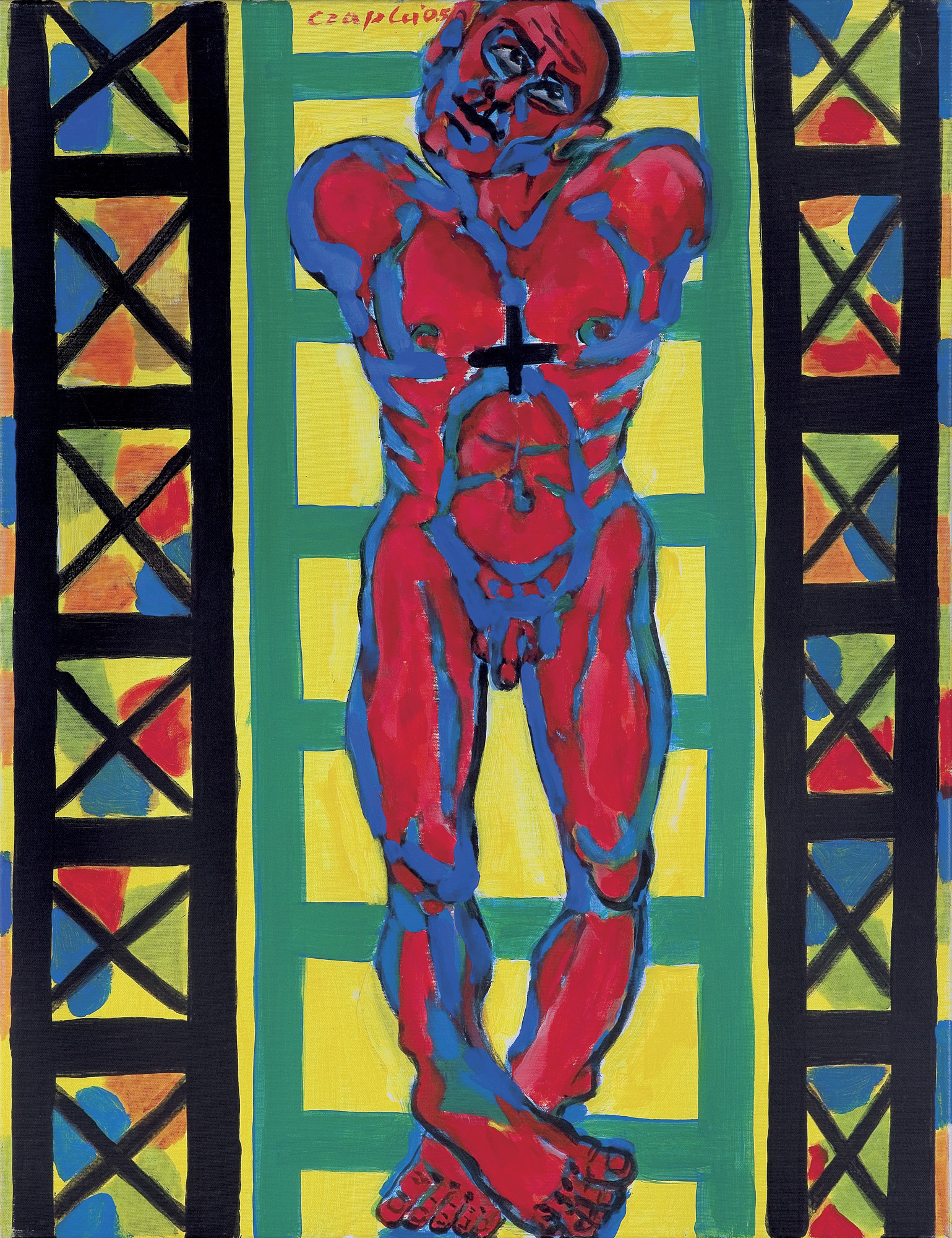 Marian Czapla (Gacki na Kielecczyźnie 28 VII 1946 - Warszawa 12 I 2016) studiował na Wydziale Malarstwa ASP w Warszawie w latach 1966-1972. Uzyskał dyplom w pracowni prof. Stefana Gierowskiego. W 1972 podjął pracę pedagogiczną w macierzystej uczelni. Od 1990 był profesorem, prowadził własną pracownię malarstwa. W latach 1974-1979 był członkiem grupy „Symplex S4“, którą tworzyło grono młodych absolwentów warszawskiej ASP, zainteresowanych możliwością kontynuowania tradycji polskiego koloryzmu z jednej, unizmu Władysława Strzemińskiego z drugiej strony. Początkowo tworzył abstrakcyjne kompozycje budowane z barwnych, zamaszyście kładzionych smug i plam. Od końca lat 70. w jego malarstwie przeważyła figuracja. Wyróżniającym się wątkiem twórczości Czapli były tematy i odniesienia religijne. Zainteresowania te pozostały aktualne w jego sztuce w latach 80., kiedy połączył je z tematyką aktualną (cykl poświęcony górnikom z „Wujka“). W pracach z lat 90. (cykle „Upadek“, „Ecce Homo“ i in.) artysta malował monumentalne figury o mocnej tektonice, podkreślonej dodatkowo zdecydowanymi barwami i konturami, ujęte w dynamicznych ruchach i skrętach ciała. Umieszczone zazwyczaj na płaskich tłach jednolitego koloru, w umownej przestrzeni, zdają się zmagać z ograniczającym je kadrem obrazu. W 2002 roku z okazji 30-lecia pracy twórczej Mariana Czapli Muzeum Narodowe w Kielcach przygotowało wystawę jego prac, której towarzyszył naukowo opracowany katalog.