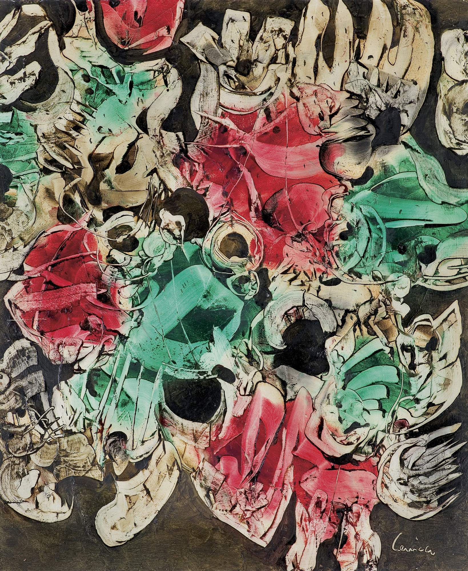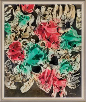 Alfred Lenica (Pabianice 1899 - Warszawa 1977) uczył się prywatnie rysunku i malarstwa w pracowniach Artura Hannytkiewicza i Piotra Kubowicza w Poznaniu (1925-1928). W latach 30. malował obrazy figuratywne, nawiązujące w stylistyce do kubizmu. Nieco później uległ wpływom surrealizmu, który, pomijając lata socrealizmu, stanie się dlań najpoważniejszym obszarem poszukiwań malarskich. Od połowy lat 40. utrzymywał stałe kontakty z kręgiem „Grupy Krakowskiej“, przyjaźnił się z Jerzym Kujawskim. Po przeniesieniu się do Poznania, w 1947 został współzałożycielem awangardowej grupy „4F+R“ (farba, forma, fantastyka, faktura + realizm). Jest autorem pierwszego polskiego obrazu taszystowskiego (Farby w ruchu, 1949, tempera). W okresie socrealizmu włączył się w nurt oficjalnej sztuki, pracując jednocześnie jako organizator życia artystycznego, prezes Okręgu Poznańskiego ZPAP (1948-1950) i jednocześnie kierownik Pracowni Sztuk Plastycznych tamże. W końcu lat 50. przeniósł się do Warszawy i również tu do 1969 pełnił kierownicze funkcje w ZPAP. W drugiej poł. lat 50. ponownie - po eksperymentach z lat 40. - uprawiał informel, malując chętnie techniką drippingu. Około 1958 wypracował indywidualny, charakterystyczny dlań styl wirujących, kolorowych, niekiedy kaligraficznie opracowanych form, które dynamicznie wypełniały pola obrazów. Tworzył je techniką zbliżoną do surrealistycznej dekalkomanii. Styl ten stał się znakiem rozpoznawczym artysty do końca życia. W swych obrazach nie unikał kształtów nawiązujących do form naturalnych (jego malarstwo nazywano „biologicznym“), a w latach 70. niekiedy włączał do kompozycji motywy figuralne. Wystawa retrospektywna artysty odbyła się w Galerii Zachęta w Warszawie w 1974.
