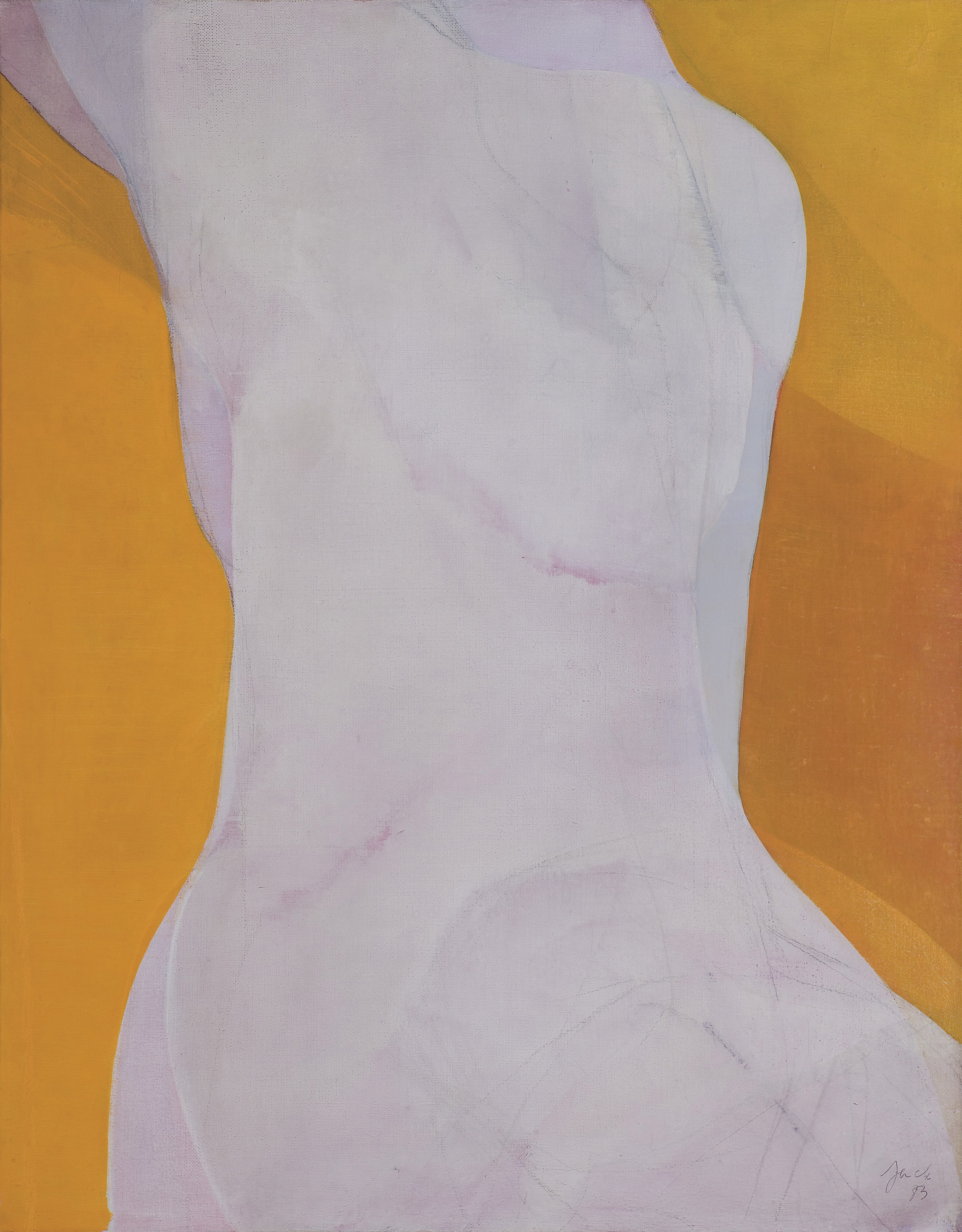 Władysław Jackiewicz (Podbrodzie na Wileńszczyźnie 17 II 1924, Gdańsk 30 III 2016) studiował na Wydziale Malarstwa w Państwowej Wyższej Szkole Sztuk Plastycznych w Gdańsku (z siedzibą w Sopocie). Dyplom otrzymał w pracowni prof. Artura Nachta-Samborskiego w 1952. W latach 1959-1981 pracował w macierzystej uczelni, przechodząc wszystkie szczeble kariery akademickiej od asystenta do profesora. W latach 1969-1981 był rektorem. Był członkiem i działaczem ZPAP, a po jego rozwiązaniu Związku Polskich Malarzy i Grafików, w którym w latach 1985-1989 pełnił funkcję prezesa. Był członkiem Narodowej Rady Kultury w latach 1986-1990. Otrzymał wiele nagród i odznaczeń państwowych. Miał kilkadziesiąt wystaw indywidualnych w kraju i za granicą, uczestniczył w licznych wystawach zbiorowych, m.in. w Wystawie Młodej Plastyki w Arsenale, Warszawa 1955, w kolejnych edycjach Ogólnopolskiej Wystawy Młodego Malarstwa, Rzeźby i Grafiki w Sopocie w 1957, 1958, 1959, IV Sympozjum Złotego Grona w Zielonej Górze 1969 (Grand Prix), XLIII Biennale Sztuki w Wenecji 1988. W latach 50. uprawiał malarstwo zakorzenione w tradycji kolorystycznej. Od 1973 tworzył jeden cykl malarski pt. „Ciało“, rozwijając w nim na niezliczone sposoby temat aktu. Kształty postaci kadrował tak, że w polu kompozycji pozostawał sam tors, zazwyczaj pozbawiony szczegółów anatomicznych. Malował rozjaśnione, syntetyczne sylwety, wykorzystując efekt prześwitywania gruntu barwnego przez cienką warstwę laserunku.