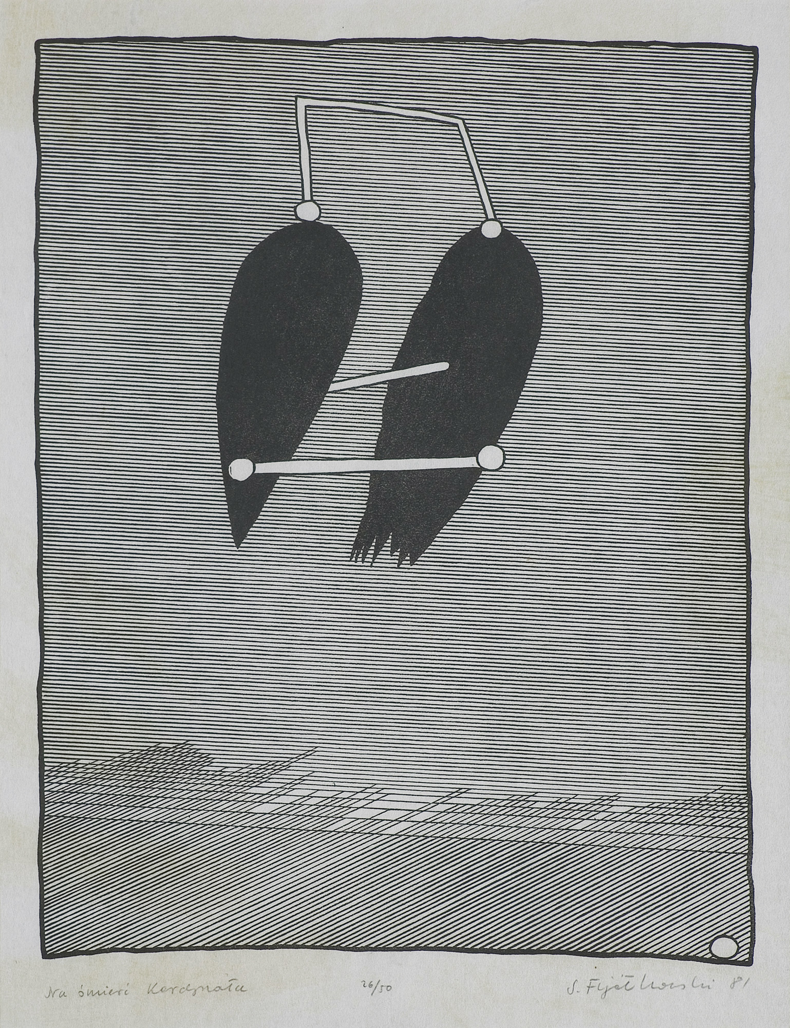 Stanisław Fijałkowski (Zdołbunow na Wołyniu 1922 - Łódź 2020) w latach 1944-1945 przebywał na robotach przymusowych w Królewcu. W latach 1946- 1951 studiował w Państwowej Wyższej Szkole Sztuk Plastycznych w Łodzi pod kierunkiem Władysława Strzemińskiego, Stefana Wegnera i Ludwika Tyrowicza, u którego uzyskał dyplom. W latach 1947-1993 był pedagogiem w macierzystej uczelni, od 1983 profesorem. Pełnił funkcje prorektora i dziekana Wydziału Grafiki. Wykładał też za granicą: w Mons (1978, 1982), Giessen (1989-1990), Marburgu (1990). Jest wiceprezydentem Międzynarodowego Stowarzyszenia Drzeworytników XYLON w Szwajcarii i przewodniczącym Polskiej Sekcji tej organizacji. Należy do zagranicznych Akademii nauk i sztuk w Salzburgu i Brukseli. Jest laureatem Nagrody Krytyki Artystycznej im. Cypriana Norwida 1971, Nagrody im. Jana Cybisa 1990 i wielu innych wyróżnień. Jako pierwszy w Polsce przetłumaczył teksty Wasyla Kandinskiego („Punkt i linia a płaszczyzna” i „O duchowości w sztuce”), oba wydane drukiem, oraz Kazimierza Malewicza „Świat bezprzedmiotowy”. Malarstwo Fijałkowskiego bazuje na skromnym zasobie abstrakcyjnych znaków i ograniczonej gamie barwnej. Kompozycje, w większości sugerujące ujęcia pejzażowe czy szerzej – przestrzenne, budowane są jakby pojedynczymi dotknięciami pędzla. Każdy szczegół nabiera ważności, śledzi się każdy niuans barwy czy faktury. Charakterystyczne kształty i motywy powtarzają się w różnych konfiguracjach w pracach artysty niczym wyrazy, z których układa za każdym razem inną opowieść. Obrazy noszą zazwyczaj poetyckie tytuły, często wpadające w tony groteskowe czy surealistyczne. Cechy te składają się na niezwykłe, intrygujące, autonomiczne zjawisko artystyczne. Malarstwu Fijałkowskiego od początku lat 60. towarzyszy czarno-biała grafika, głównie linoryt i drzeworyt, sporadycznie litografia.