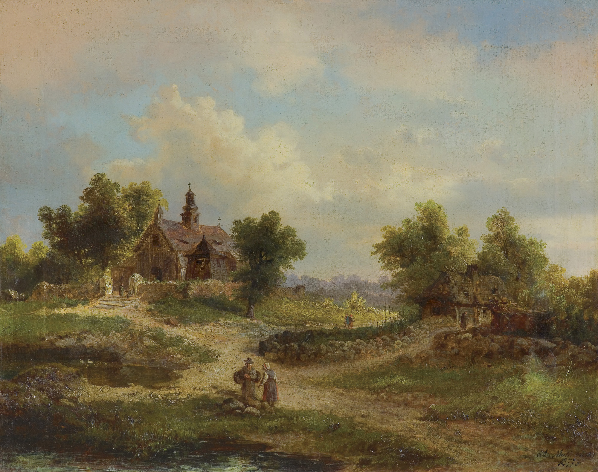 Adam Malinowski (Lublin 1829 - Warszawa 1892) - malarz i dekorator teatralny - naukę malarstwa rozpoczął w Lublinie. Od roku 1851 pracował w warszawskiej dekoratorni Teatrów Rządowych pod kierunkiem Antoniego Sachettiego i Józefa Hilarego Głowackiego. Od roku 1864 pracował w Wiedniu jako dekorator teatrów cesarskich, a w roku 1873 został naczelnym dekoratorem Warszawskich Teatrów Rządowych: Wielkiego, Rozmaitości i Letniego. Jego dekoracje do oper, dramatów i baletów odznaczały się „piękną fakturą, poprawnością rysunku i znajomością efektów scenicznych”. Ponadto z powodzeniem zajmował się malarstwem sztalugowym; malował przede wszystkim pejzaże, rzadziej sceny rodzajowe i portrety. Brał udział w wielu wystawach, przede wszystkim w warszawskiej Zachęcie (od 1863 ok. 90 obrazów), a także w Salonie Krywulta i w krakowskim TPSP.