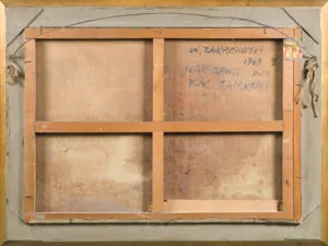 na odwrocie czarnym olejem: W. ZAKRZEWSKI | 1969 2 | WARSZAWA 80 x 110 | PLAC ZAMKOWY