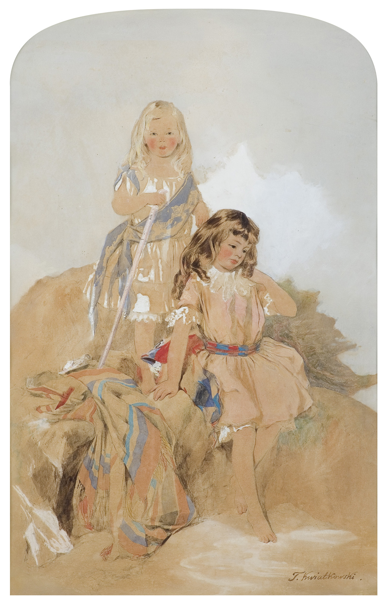 Teofil Kwiatkowski (Pułtusk 1809 - Avallon w Burgundii 1891) - wybitny przedstawiciel romantyzmu w malarstwie polskim - w latach 1825-1830 studiował malarstwo na Oddziale Sztuk Pięknych Uniwersytetu Warszawskiego u A. Brodowskiego i A. Blanka. Jako oficer 4. pułku piechoty walczył w powstaniu listopadowym; po klęsce jego emigrował do Francji, gdzie pozostał do końca życia. początkowo przebywał w Avignonie, później w Paryżu. Tu studiował jeszcze u A. Toussainta, P. Sentiesa, J. L. Dulonga i L. Cognieta. Utrzymywał bliskie kontakty ze środowiskiem emigracyjnym, m.in. z rodziną ks. Czartoryskich, Adamem Mickiewiczem, Fryderykiem Chopinem, Cyprianem Kamilem Norwidem, Teofilem Lenartowiczem. Wielokrotnie portretował Chopina (także na łożu śmierci), któremu poświęcił też dużą, symboliczną kompozycję Bal w Hôtel Lambert - Polonez Chopina. Malował piękne, przesycone romantyczną aurą krajobrazy z Prowansji i Burgundii. Malował obrazy olejne i bardzo liczne, mistrzowskie akwarele – portrety, pejzaże, sceny rodzajowe, patriotyczne, kostiumowe i alegoryczne. Jego dzieła odznaczają się niepoślednimi walorami kolorystycznymi, emocjonalnym stosunkiem do natury, a także typowo romantyczną skłonnością do fantazji i metafory, zabarwionej często odcieniem melancholii. Artysta wystawiał, m.in. na oficjalnych Salonach paryskich (1839-1881), nadsyłał swe prace także na wystawy krajowe (1862-1873 TZSP w Warszawie). Jego obrazy, akwarele, rysunki znajdują się w Muzeum Mickiewicza w Paryżu, w zbiorach Muzeów Narodowych w Warszawie, Krakowie i Poznaniu, pozostałe są w rękach prywatnych we Francji. Na rynku antykwarskim są rzadkością.