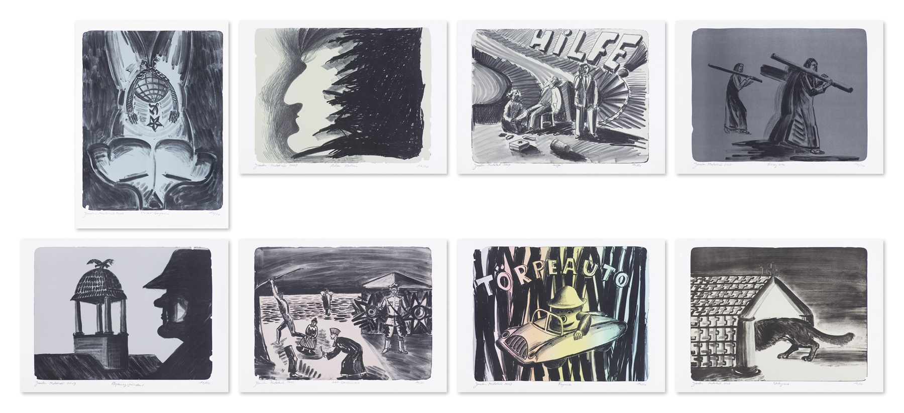 Jarosław Modzelewski (Warszawa 1955, mieszka w Warszawie) studiował malarstwo w ASP w Warszawie w latach 1975-1980, uzyskując dyplom w pracowni Stefana Gierowskiego. Od 1982 pracuje jako pedagog na macierzystym wydziale. W 1982 był współzałożycielem „Gruppy”, najważniejszego ugrupowania nurtu nowej ekspresji lat 80., działającego do 1992. W latach 1991-1996 wspólnie z Markiem Sobczykiem prowadził prywatną Szkołę Sztuki w Warszawie. Od wielu lat współpracuje z Galerią Zderzak w Krakowie. W początkowym okresie twórczości skłaniał się ku abstrakcji, wykorzystywał uproszczone znaki i emblematy oraz sylwetki odbite z szablonu. W 1985 namalował cykl oparty na ilustracjach do podręczników języka rosyjskiego, obrazujący proste czynności, których czasownikowe określenia stanowią tytuły prac. W 1986-1989 powstawały obrazy utrzymane w konwencji realistycznej, jednak zarazem o surrealnej atmosferze uzyskiwanej różnymi metodami, np. przez dublowanie figur, ukazywanie postaci w sytuacji niepewności czy zagrożenia, zabiegi z przestrzenią. W grupie obrazów z 1988 artysta rezygnuje z postaci ludzkiej na rzecz wyjątkowego nasycenia emocją samej przestrzeni pejzaży i wnętrz. Około 1990 wraca do kompozycji akcentujących czynności wykonywane przez postaci, które często umieszczone są w pustej, zaledwie zasugerowanej, acz dominującej przestrzeni. Odrealnienia i monumentalności dodaje tym obrazom płaskie i rozległe kładzenie koloru.