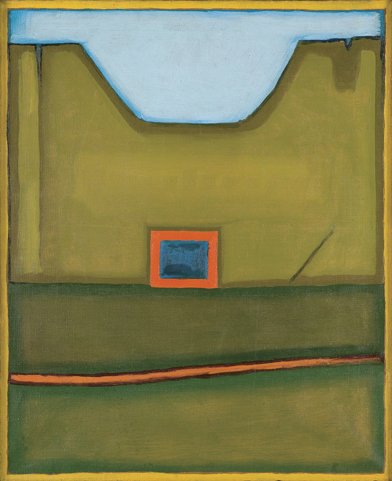W latach 50. i 60. pojawiają się w twórczości Jerzego Nowosielskiego syntetyczne pejzaże, w których – w charakterystyczny dla siebie sposób – łączy artysta elementy sztuki figuratywnej i abstrakcji. Kubizowane formy zaczerpnięte z natury, scalane są typowym dla ikony płaszczyznowym ujęciem całości. O górskich pejzażach Nowosielskiego pisał Andrzej Kostołowski: Wśród elementów krajobrazowych góry wydają się mieć znaczenie szczególne. To one przecież są i najbardziej wyniosłe, i graniczą z niebem. [...] Jak wiadomo, malarstwo chrześcijaństwa wschodniego utrwaliło znakowy charakter skał w na wpół zgeometryzowanych układach brył, ze szczególnym podkreśleniem form trapezoidalnych. Artysta z upodobaniem i mistrzostwem maluje takie spirytualne góry. [cyt. za: A. Kostołowski, Między niebem i ziemią, w: Jerzy Nowosielski. Katalog wystawy, Muzeum Narodowe w Poznaniu 1993, s. 65-66]