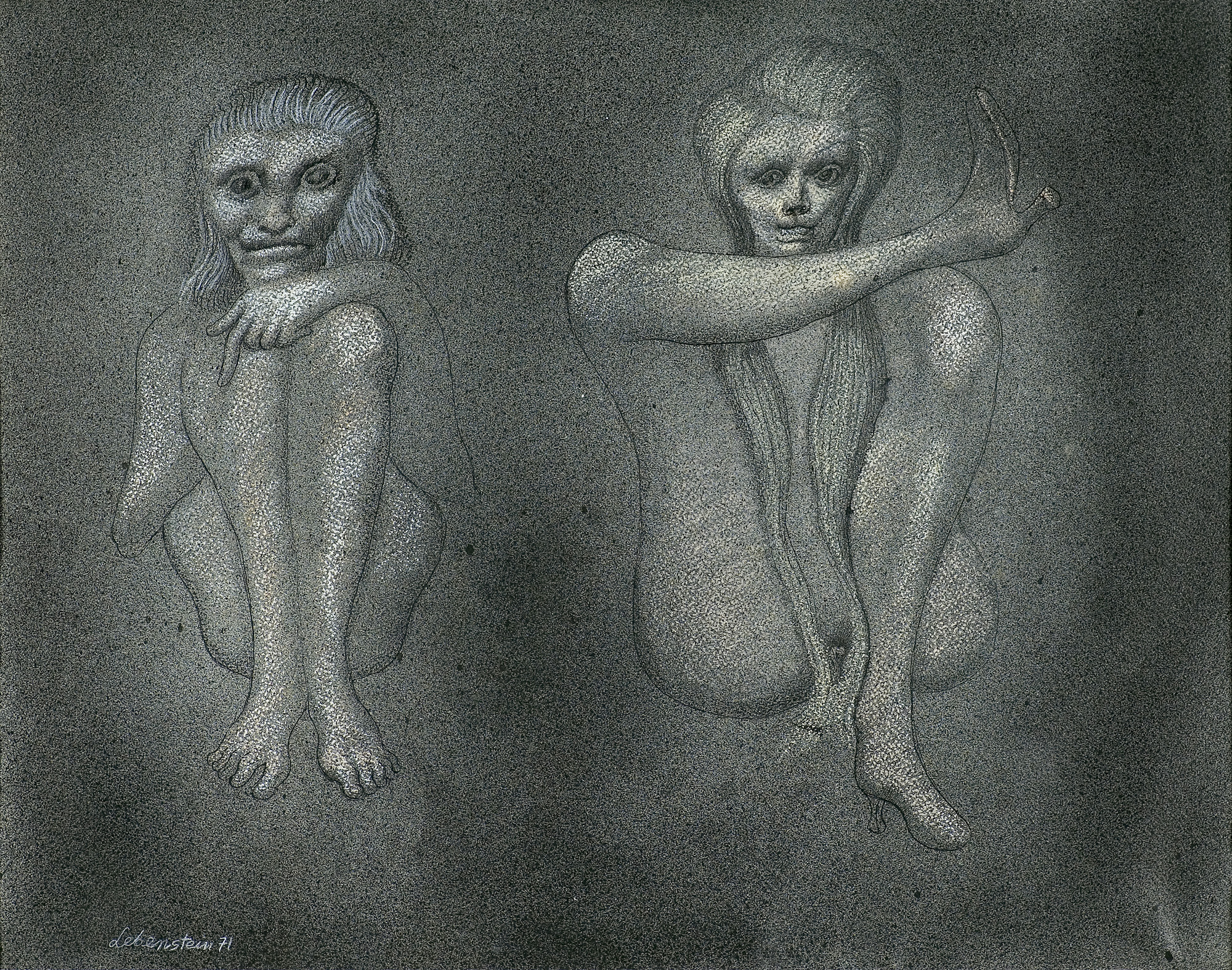 Jan Lebenstein (Brześć Litewski 1930 - Kraków 1999) w latach 1948-1954 studiował malarstwo w ASP w Warszawie pod kierunkiem prof. Eugeniusza Eibischa i Artura Nachta-Samborskiego. W 1955 wziął udział w wystawie w warszawskim Arsenale. Zaprzyjaźniony w czasie studiów z Mironem Białoszewskim, swą pierwszą wystawę indywidualną pokazał w 1956 w Teatrze na Tarczyńskiej. W 1959 zdobył Grand Prix de la Ville de Paris na I Biennale Młodych w Paryżu i w tym roku przeniósł się na stałe do Paryża. Po seriach "figur kreślonych" (na papierze milimetrowym) i "figur hieratycznych" z lat 1955-1958 maluje cykl "figur osiowych" (1958-1962), które wystawia w Paryżu i USA. Równolegle w 1960 zaczyna rysowane "karnety", rodzaj dziennika, który w przyszłości dostarczy motywów wykorzystanych w obrazach. W latach 1964-1965 maluje "Bestiarium", cykl fakturowych, archaizowanych stworów przypominających prehistoryczne wykopaliska. Bezpośrednio po nich wprowadza do swych obrazów postaci ludzkie i fantastyczne, odgrywające sceny ni to mitologiczne, ni to ze snu, często przesycone erotyką. W 1970 projektuje witraże dla Centre du Dialogue w Paryżu. W W 1971 otrzymuje obywatelstwo francuskie 1974 powstają gwasze inspirowane Folwarkiem zwierzęcym George'a Orwella. W latach 1976-1989 tworzy wyłącznie w technice gwaszu i pastelu, podejmując tematykę mitologiczną i zaczerpniętą z Biblii: cykle ilustracji do Księgi Hioba (wyd. 1979) i do Apokalipsy (wyd. 1986) w nowych przekładach Czesława Miłosza. W 1989 powraca do malarstwa olejnego (cykl "Pergamon"). Artysta otrzymał m. in. nagrodę Fundacji im. Alfreda Jurzykowskiego w 1976, Nagrodę Muzeum Archidiecezji Warszawskiej w 1985, Nagrodę im. Jana Cybisa w 1987.