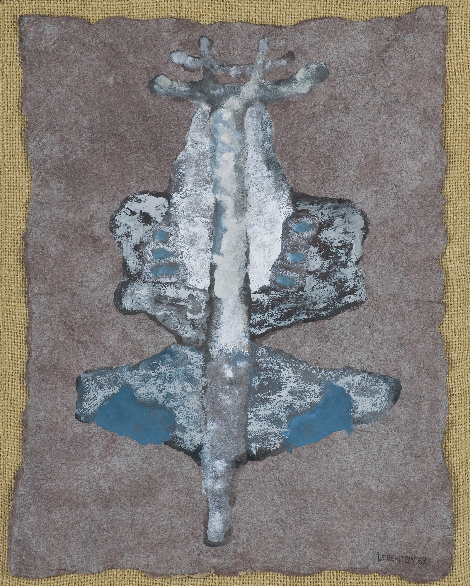 Jan Lebenstein (Brześć Litewski 1930 - Kraków 1999) w latach 1948-1954 studiował malarstwo w ASP w Warszawie pod kierunkiem prof. Eugeniusza Eibischa i Artura Nachta-Samborskiego. W 1955 wziął udział w wystawie w warszawskim Arsenale. Zaprzyjaźniony w czasie studiów z Mironem Białoszewskim, swą pierwszą wystawę indywidualną pokazał w 1956 w Teatrze na Tarczyńskiej. W 1959 zdobył Grand Prix de la Ville de Paris na I Biennale Młodych w Paryżu i w tym roku przeniósł się na stałe do Paryża. Po seriach "figur kreślonych" (na papierze milimetrowym) i "figur hieratycznych" z lat 1955-1958 maluje cykl "figur osiowych" (1958-1962), które wystawia w Paryżu i USA. Równolegle w 1960 zaczyna rysowane "karnety", rodzaj dziennika, który w przyszłości dostarczy motywów wykorzystanych w obrazach. W latach 1964-1965 maluje "Bestiarium", cykl fakturowych, archaizowanych stworów przypominających prehistoryczne wykopaliska. Bezpośrednio po nich wprowadza do swych obrazów postaci ludzkie i fantastyczne, odgrywające sceny ni to mitologiczne, ni to ze snu, często przesycone erotyką. W 1970 projektuje witraże dla Centre du Dialogue w Paryżu. W W 1971 otrzymuje obywatelstwo francuskie 1974 powstają gwasze inspirowane Folwarkiem zwierzęcym George'a Orwella. W latach 1976-1989 tworzy wyłącznie w technice gwaszu i pastelu, podejmując tematykę mitologiczną i zaczerpniętą z Biblii: cykle ilustracji do Księgi Hioba (wyd. 1979) i do Apokalipsy (wyd. 1986) w nowych przekładach Czesława Miłosza. W 1989 powraca do malarstwa olejnego (cykl "Pergamon"). Artysta otrzymał m. in. nagrodę Fundacji im. Alfreda Jurzykowskiego w 1976, Nagrodę Muzeum Archidiecezji Warszawskiej w 1985, Nagrodę im. Jana Cybisa w 1987.