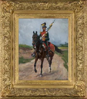 Wojciech Kossak (Paryż 1856 - Kraków 1942 ) – powszechnie znany malarz, postrzegany przede wszystkim jako świetny batalista. Syn i uczeń Juliusza Kossaka kształcił się w krakowskiej Szkole Sztuk Pięknych, w Akademii monachijskiej oraz w Paryżu. W latach 1895-1902 przebywał głównie w Berlinie, pracując dla cesarza Wilhelma II. Wiele podróżował, m.in. do Hiszpanii i Egiptu, gdzie wykonywał szkice do zamierzonych panoram. W późniejszych latach kilkakrotnie wyjeżdżał do Stanów Zjednoczonych wykonując zamówienia portretowe. W 1913 był mianowany profesorem warszawskiej Szkoły Sztuk Pięknych. W latach I wojny światowej pełnił służbę wojskową. Był współautorem panoram: „Racławice” (1893-1894), „Berezyna” (1895-1896), „Bitwa pod piramidami” (1901) oraz szkiców do niezrealizowanej „Somosierry” (1900). Z temperamentem i swobodą tworzył szeroko malowane, dynamiczne sceny batalistyczne, historyczne, rodzajowe oraz liczne portrety. Z upodobaniem malował konie. Jego obrazy, gloryfikujące dawne i współczesne artyście polskie wojsko i bohaterstwo żołnierzy, trafiały do patriotycznych uczuć odbiorców i cieszyły się ogromna popularnością.