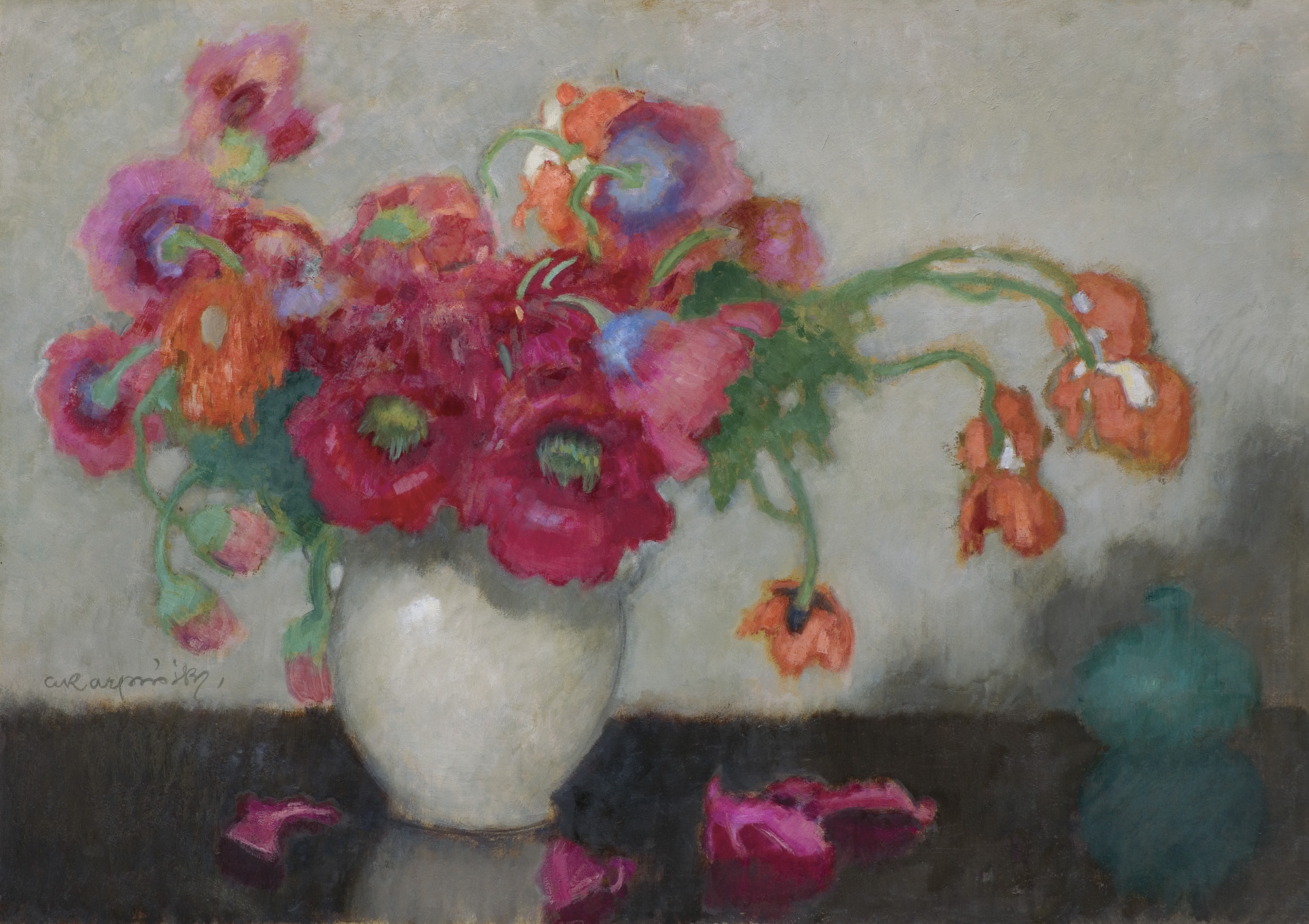 Alfons Karpiński (Rozwadów, dziś dzielnica Stalowej Woli 1875 - Kraków 1961) w latach 1891-1899 studiował w krakowskiej Szkole Sztuk Pięknych pod kierunkiem Floriana Cynka, Izydora Jabłońskiego, Władysława Łuszczkiewicza i Leona Wyczółkowskiego, a następnie kształcił się jeszcze u Antona Ažbégo w Monachium (1903), u Kazimierza Pochwalskiego w Wiedniu, a od 1907 także w Paryżu. Podróżował do Włoch i Londynu. Stale mieszkał w Krakowie; związany z tamtejszym środowiskiem skupionym wokół „Zielonego Balonika” projektował dekoracje do przedstawień kabaretu. Należał do Tow. Artystów Polskich „Sztuka”, grupy „Zero”, był członkiem wiedeńskiego stowarzyszenia „Secesja” i krakowskiego TPSP. Uczestniczył w wielu wystawach w kraju i za granicą. W czasie I wojny światowej służył w armii austriackiej. Na bogatą twórczość artysty składają się wczesne sceny rodzajowe z podkrakowskiej wsi, pejzaże i portrety, wśród nich zwłaszcza portrety kobiece, które przyniosły mu szczególną popularność. Z czasem głównym – obok portretu – tematem jego obrazów stały się martwe natury z kwiatami, dekoracyjne kompozycje o stonowanej gamie barwnej. Artysta zajmował się także grafiką i ilustratorstwem.