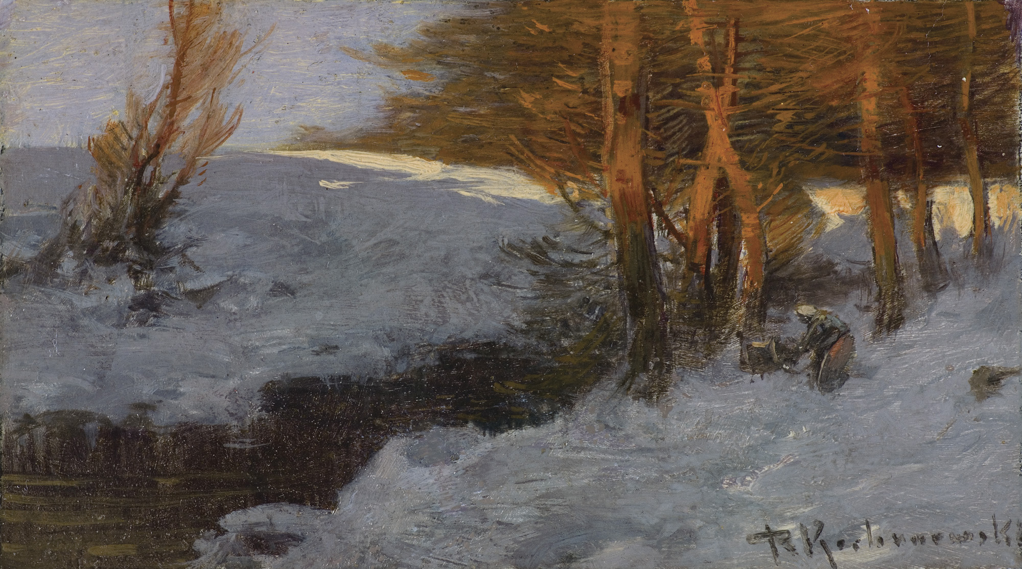 PEJZAŻ ZIMOWY ZE STRUMIENIEM, po 1900