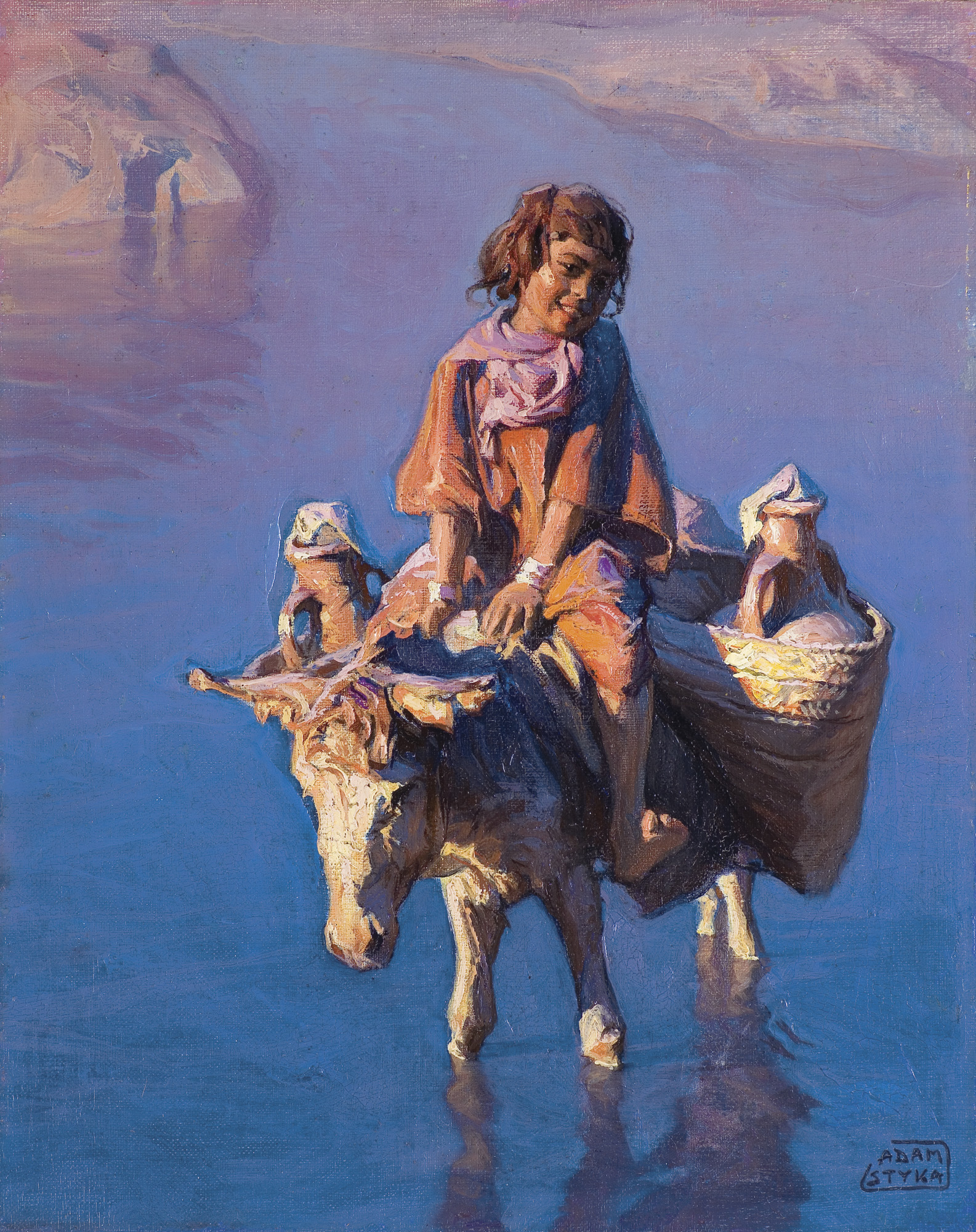 Adam Styka (Kielce 1890 - Nowy Jork 1959) – syn malarza Jana i młodszy brat Tadeusza Styki – był malarzem-orientalistą. Początkowo studiował matematykę i inżynierię, później rozpoczął studia w École Nationale des Beaux Arts w Paryżu (1908-1912). Podczas I wojny światowej służył w Błękitnej Armii gen. J. Hallera – najpierw we Francji (medal za bitwę pod Verdun), później w Polsce. Jako malarz zaczął od scen rodzajowych, ale po podróży do Afryki Północnej tworzył przede wszystkim obrazy o tematyce orientalnej. Motywy znajdował podczas, wielokrotnie powtarzanych, wypraw do Maroka, Algieru, Tunisu i Egiptu. Swoje prace wystawiał głównie za granicą, w okresie międzywojennym miał też kilka wystaw w kraju, m.in. w warszawskiej Zachęcie. Pokazy te cieszyły się zawsze ogromnym powodzeniem u publiczności, a wystawione obrazy znajdowały wielu chętnych nabywców. Adam Styka malował też obrazy religijne (znany obraz Chrystusa Króla; 1944; dla oo. palotynów w Warszawie; zniszczony w pożarze w roku 2007) i zajmował się ilustracją książkową, m.in. opracował ilustracje do „W pustyni i w puszczy” H. Sienkiewicza. Po II wojnie światowej artysta mieszkał i tworzył w Stanach Zjednoczonych – malował pejzaże i mieszkańców Meksyku czy Arizony oraz - szczególnie liczne – obrazy o tematyce religijnej. Kierował również pracami konserwatorskimi przy panoramie Golgota, dzieła jego ojca, Jana Styki (odsłonięta po renowacji w roku 1951 w Los Angeles).