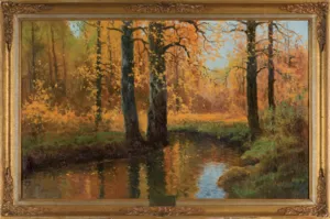 Wiktor Korecki (Kamieniec Podolski 1890 - Komorów k. Warszawy 1980) - malarz pejzażysta - gimnazjum ukończył w Kijowie, tam też studiował w Szkole Rysunkowej Aleksandra Muraszki. Po studiach wrócił do Kamieńca Podolskiego, skąd w roku 1921 wyjechał do Warszawy. Tu miał pracownię na rogu ulic Tamki i Cichej. Niestety zgromadzone tam obrazy spłonęły w czasie powstania 1944 roku. Po powstaniu artysta przebywał w obozie w Pruszkowie skąd trafił do obozu pracy w Lipsku. Do kraju powrócił w roku 1946 i zamieszkał w Komorowie pod Warszawą, a później w Milanówku. Jego nastrojowe krajobrazy emanujące spokojem i pogodą cieszyły się zawsze dużą popularnością. Korecki najczęściej malował pejzaże zimowe z motywem leśnej drogi i strumienia wijącego się wśród śniegów, a obok nich także wiosenne, letnie czy jesienne widoki z Mazowsza.