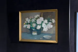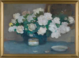 Alfons Karpiński (Rozwadów, dziś dzielnica Stalowej Woli 1875 - Kraków 1961) w latach 1891-1899 studiował w krakowskiej Szkole Sztuk Pięknych pod kierunkiem Floriana Cynka, Izydora Jabłońskiego, Władysława Łuszczkiewicza i Leona Wyczółkowskiego, a następnie kształcił się jeszcze u Antona Ažbégo w Monachium (1903), u Kazimierza Pochwalskiego w Wiedniu, a od 1907 także w Paryżu. Podróżował do Włoch i Londynu. Stale mieszkał w Krakowie; związany z tamtejszym środowiskiem skupionym wokół „Zielonego Balonika” projektował dekoracje do przedstawień kabaretu. Należał do Tow. Artystów Polskich „Sztuka”, grupy „Zero”, był członkiem wiedeńskiego stowarzyszenia „Secesja” i krakowskiego TPSP. Uczestniczył w wielu wystawach w kraju i za granicą. W czasie I wojny światowej służył w armii austriackiej. Na bogatą twórczość artysty składają się wczesne sceny rodzajowe z podkrakowskiej wsi, pejzaże i portrety, wśród nich zwłaszcza portrety kobiece, które przyniosły mu szczególną popularność. Z czasem głównym – obok portretu – tematem jego obrazów stały się martwe natury z kwiatami, dekoracyjne kompozycje o stonowanej gamie barwnej. Artysta zajmował się także grafiką i ilustratorstwem.