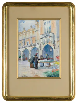 Stanisław Tondos (Kraków 1854-Kraków 1917) znany jest przede wszystkim jako malarz swego rodzinnego miasta Krakowa. Tu po ukończeniu gimnazjum, w latach 1869-1975 kształcił się w Szkole Sztuk Pięknych pod kierunkiem Władysława Łuszczkiewicza i Jana Matejki. Studia kontynuował w Wiedniu, a przez krótki czas także w Akademii monachijskiej u Otto Seitza. Już w początkach swej twórczości zajął się malarstwem wedutowym. Wyjeżdżał do Wenecji, Pragi, Wiednia, Rapperswillu, Norymbergi, Magdeburga malując widoki architektury tych miast. Jego ulubioną, najczęściej stosowaną i mistrzowsko opanowaną techniką była akwarela, ale malował także olejno i pastelami. Najliczniejszą grupę jego dzieł stanowią widoki Krakowa. Obrazy te przedstawiając – często już nieistniejące – domy, uliczki, zaułki są dziś świadectwem minionego czasu, ważnym dokumentem ikonograficznym. Artysta malował też widoki z innych miast Polski - Lwowa, Poznania, Warszawy. W 1886 wspólnie z Juliuszem Kossakiem namalował cykl 24 akwarel, które następnie ukazały się w tece graficznej jako "Klejnoty m. Krakowa". W latach późniejszych powstały jeszcze cykle akwarel "Kościół Mariacki w Krakowie" (1892), "Wawel przeszłości skarbnica, siedziba Piastów i Jagiellonów" (1910), "Kraków Legiony" (1915-1917), malowane tym razem we współpracy z Wojciechem Kossakiem, który był autorem sztafażu – sylwetek ludzi, koni, scenek rodzajowych. Począwszy od 1875 Tondos regularnie wystawiał swe prace w Towarzystwie Przyjaciół Sztuk Pięknych w Krakowie. Brał też udział w wystawach w Warszawie, m.in. w Towarzystwie Zachęty i w Salonie Krywulta. Wiele prac artysty spopularyzowano w formie pocztówek wydawanych nakładem wydawnictwa Salonu malarzy Polskich. W 1900 na wystawach kart pocztowych w Warszawie i w Paryżu Tondos został odznaczony złotymi medalami „za wysoce artystycznie odtworzenie w projektach akwarelowych miast polskich – Lwowa, Krakowa, Warszawy”.
