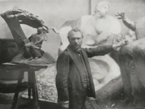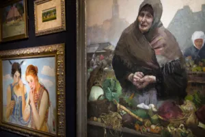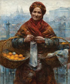 Szymanowski dziś jest najbardziej znany jako autor pomnika Chopina z warszawskich Łazienek. Jednak słynny dziś młodopolski rzeźbiarz swoją edukację artystyczną rozpoczął w Klasie Rysunkowej u Wojciecha Gersona w Warszawie, następnie uczył się w Paryżu, w École des Beaux-Arts oraz w pracowni rzeźbiarza Cypriana Godebskiego (1875-1879). W latach 1880-1882 studiował malarstwo w akademii monachijskiej. W roku 1895 malarstwo porzucił, by poświęcić się rzeźbie. Zanim to się jednak stało, jako malarz zdobył sobie wysokie uznanie. W 1888 roku za obraz Kłótnia Hucułów został nagrodzony złotym medalem w Monachium oraz w 1889 r. na Wystawie Powszechnej w Paryżu; trzeba tu wspomnieć, że w tym samym czasie w Paryżu srebrnym medalem został nagrodzony Józef Pankiewicz za swój słynny Targ na jarzyny na Placu Żelaznej Bramy. Oba obrazy prezentują podobny temat, są namalowane w konwencji realistycznej, pod wpływem Aleksandra Gierymskiego. Stworzona ok. 1883 Przekupka przywodzi wprost na myśl powstałą 2 lata wcześniej Pomarańczarkę Gierymskiego. Wybór modelki, ujęcie tematu, przejmujący realizm w oddaniu rysów zmęczonej życiem kobiety – zbliżają oba płótna.