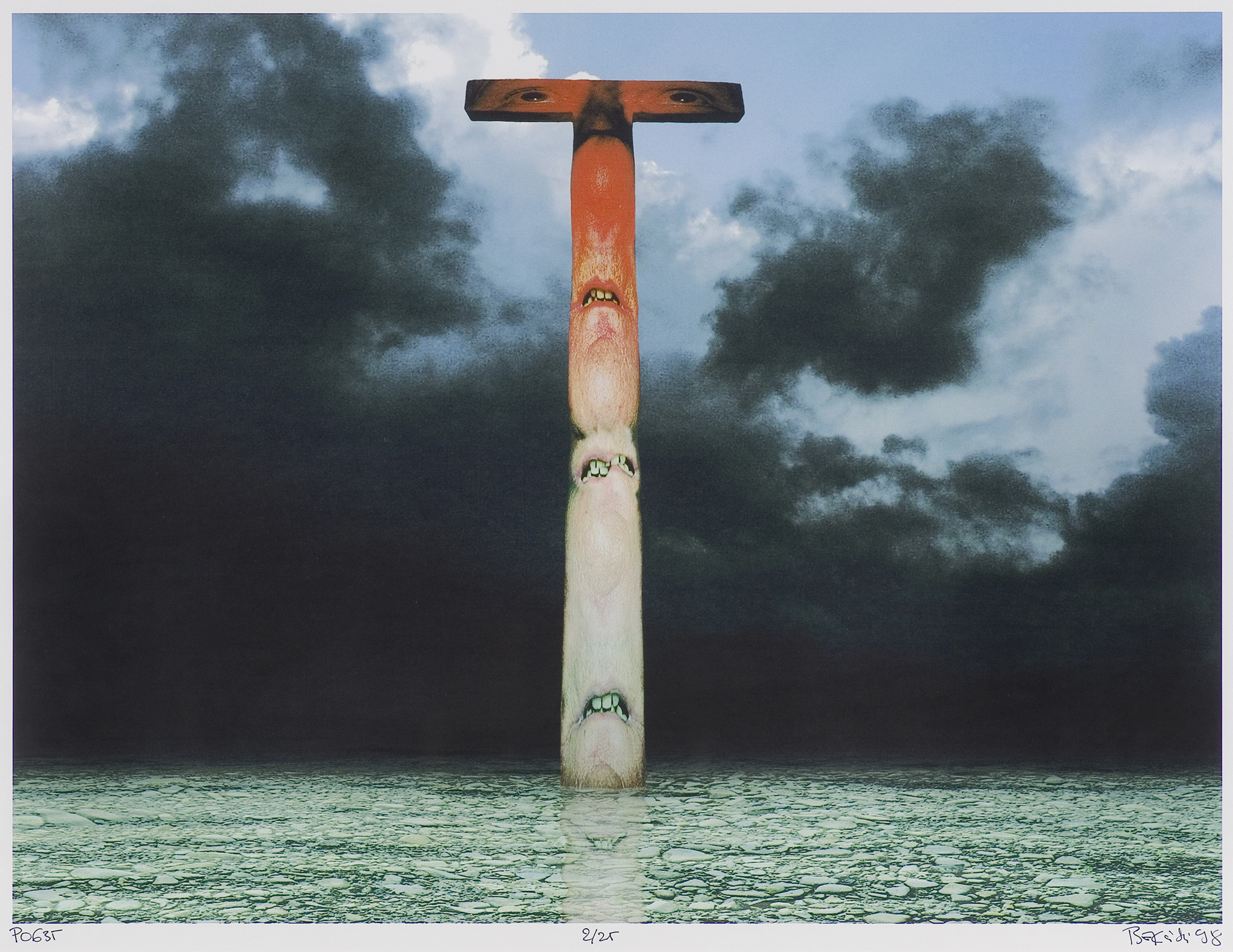 Zdzisław Beksiński (Sanok 24 II 1929 - Warszawa 21 II 2005) studiował w latach 1947-1952 na Wydziale Architektury Politechniki Krakowskiej. Był artystą samoukiem, który osiągnął niekwestionowaną pozycję w polskiej sztuce współczesnej, potwierdzoną obecnością jego prac na prestiżowych wystawach i w kolekcjach muzealnych. Początkowo zajmował się fotografią, którą interesował się od lat studenckich, po 1956 zyskując uznanie jako twórca fotogramów o estetyce opartej o efekty fakturowe. W latach 1958-1962 tworzył abstrakcyjne obrazy-reliefy o bogatej fakturze, głównie metalowe, będące odmianą malarstwa materii. Pod koniec tego okresu powstawały ażurowe formy o kształtach figur i pełnoplastyczne rzeźby w metalu. Kolejnym etapem jego twórczości były lata 1962-1974, kiedy poświęcał się głównie rysunkowi. W latach 60. rysował piórkiem i tuszem figuralne kompozycje odznaczające się karykaturalną deformacją postaci. Od końca lat 60. tworzył rysunki węglem i kredkami, będące monochromatyczną odmianą jego równoległej twórczości malarskiej. Od 1974 zajmował się niemal niepodzielnie malarstwem. Jego charakterystyczny styl bazował na perfekcji technicznej, której towarzyszyła niezwykłość wizji. Malował świat po katastrofie, naznaczony piętnem śmierci i rozpadu. Jego obrazy zaludniają postaci i stwory o ludzkich wprawdzie bądź zwierzęcych kształtach, lecz o cechach fantomów, automatów lub rozpadających się trucheł. Artysta nie nadawał swym obrazom i rysunkom tytułów (poza porządkującymi symbolami), akcentując w ten sposób swój brak zainteresowania dla literackiej strony przedstawień. Sam mówił, że malując całkowicie poddaje się wizji, „fotografuje“ ją. W ostatnich latach włączył do swego warsztatu artystycznego elektroniczne techniki generowania obrazu, które wykorzystywał do tworzenia komputerowych fotomontaży. Sztuka Beksińskiego, wielokrotnie wystawiana i omawiana, budzi skrajne emocje wśród znawców i publiczności.