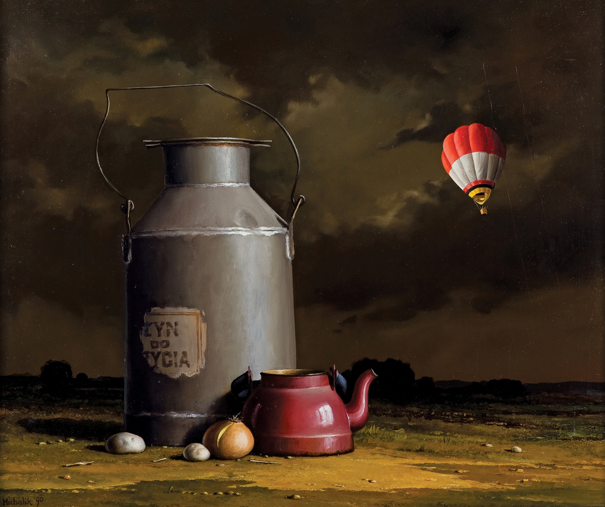 Marian Michalik (Zabrze 1947 - Częstochowa 1997) - był absolwentem Liceum Sztuk Plastycznych w Częstochowie. Po jego ukończeniu w 1966 zajmował się grafiką użytkową. Kilka lat później zwrócił się ku malarstwu, w którym doskonalił się samodzielnie. W 1979 został przyjęty do Związku Polskich Artystów Plastyków. Od tego czasu intensywnie wystawiał w kraju i za granicą, uzyskując wiele nagród na krajowych i miedzynarodowych konkursach, m.in. złoty medal na „Bielskiej Jesieni“ w 1980, wyróżnienie na XV Grand Prix d'Art Contemporain, Monte Carlo 1981, nagroda na Międzynarodowym Biennale Malarstwa, Koszyce 1985. W 1987 został członkiem Europejskiej Akademii Sztuki, Nauki I Literatury w Paryżu. Tworzył w konwencji magicznego realizmu, precyzyjnie odtwarzając banalne przedmioty codziennego użytku, różne narzędzia, płody natury itp., a następnie tworząc ich niezwykłe zestawienia. Stosując ciemną kolorystykę i efekty świetlne nawiązywał do historycznego malarstwa mistrzów holenderskich martwych natur.