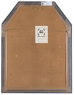 Na odwrocie na płycie data: 25 VI 97 oraz nalepka autorska z danymi obrazu.
