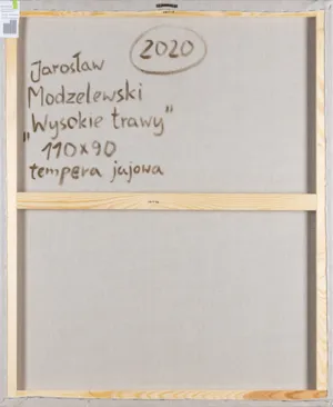 sygn. na odwr. na płótnie l.g.: Jarosław | Modzelewski | „Wysokie trawy“ | 110 x 90 | tempera jajowa, obok: 2020 [w kółku]