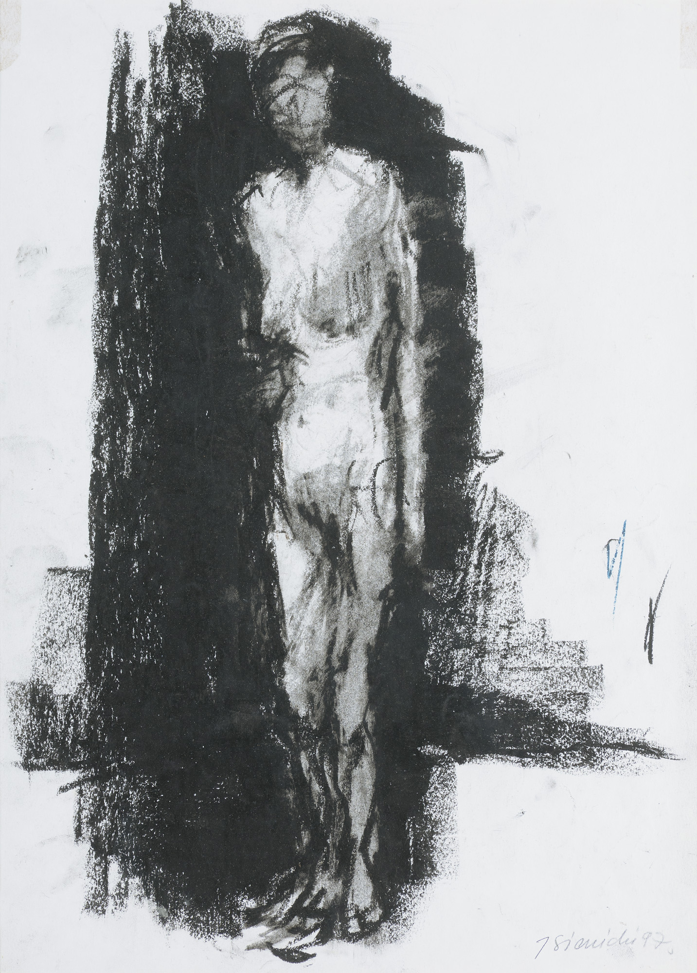 Jacek Sienicki (Warszawa 29 II 1928 - Warszawa 14 XII 2000) studiował na Wydziale Malarstwa ASP w Warszawie, gdzie w 1954 uzyskał dyplom w pracowni prof. Artura Nachta-Samborskiego. W 1955 był uczestnikiem Wystawy Młodej Plastyki w warszawskim Arsenale. Udział w tej manifestacji był nie tylko właściwym debiutem artysty, ale też na lata określił jego postawę, dzieloną z innymi „arsenałowcami“, której zasady to: prymat etyki, sceptycyzm wobec przemijających mód artystycznych, wierność sobie. W 1955 Sienicki podjął pracę pedagogiczną w macierzystej uczelni. Przeszedł wszystkie szczeble akademickie, otrzymując tytuł profesora w 1981. Był laureatem liczących się nagród, m.in. Nagrody Krytyki im. Cypriana Kamila Norwida w 1974, Nagrody im. Jana Cybisa (niezależnej) w 1984, nagrody Fundacji im. Alfreda Jurzykowskiego w 1993. Jego malarstwo od wczesnych lat oscylowało między figuratywizmem o często dramatycznej wymowie egzystencjalnej i skłonnością do abstrakcji. Przy tym malarz nie opuszczał dość ograniczonego zestawu ulubionych motywów, do których należały: czaszki końskie, wydłużone postaci, ciemne wnętrza, które rozgrywał w podobnej, ciemno-zimnej gamie barwnej. Równolegle do malarstwa wiele rysował, zazwyczaj węglem, traktując prace w tej technice jako autonomiczne dzieła.
