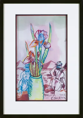 Edward Dwurnik (Radzymin 19 IV 1943 - Warszawa 28 X 2018) studiował malarstwo w ASP w Warszawie (1963-1970), jednak jako swego „mistrza“ wymienia Nikifora. Jego to prace, zobaczone po raz pierwszy w 1965, zainspirowały ówczesnego studenta III roku do narysowania pierwszych prac z cyklu „Podróże autostopem“, które kontynuował w nastepnych latach. W 1972-1978 powstawał cykl „Sportowcy“, w którym portretowane były, dodajmy - kąśliwie, typowe postaci z lat 70. Równolegle od 1975 powstawał cykl „Robotnicy“, który kulminował w okresie „Solidarności“ 1980-1981. Za prace z tego cyklu Dwurnik otrzymał w 1981 Nagrodę Krytyki Artystycznej im. Cypriana Kamila Norwida, natomiast za obrazy z cyklu „Warszawa“ (1981), proroczo zapowiadające stan wojenny - Nagrodę Kulturalną „Solidarności“ podziemnej w 1983. W latach 80. malarstwo Dwurnika przybrało wyraz ekspresyjny i dramatyczny. Powstające w tej dekadzie obrazy miały niejednokrotnie wymowę polityczną, przybierały też kostium historyczny, tak czy inaczej odnoszący się do współczesnych spraw i realiów. Cykl „Droga na Wschód“ (1989-91) upamiętniał ofiary stalinizmu, natomiast cykl „Od Grudnia do Czerwca“ (1990-94) - ofiary stanu wojennego. Zarówno ideowe, jak i czysto malarskie walory tych prac przyniosły artyście ogromne uznanie, zarówno w kraju jak i za granicą. Jego wyrazem była prestiżowa nagroda Fundacji Coutts & Co w Zurychu (1992). W latach 90. powstają cykle będące kontynuacją „Podróży autostopem“: „Niebieskie miasta“ (od 1993) i „Diagonale“ (od 1996), jak również kompozycje nowego typu, jak widoki morskie (cykl „Błękitne“, 1992-93) czy cykl „Wyliczanka“ (1996-99). Artysta wiele wystawia, miał ok. 100 wystaw indywidualnych w Polsce i za granicą, brał też udział w licznych wystawach i festiwalach krajowych i międzynarodowych, m.in.: X Biennale Sztuki Współczesnej, Menton 1974, Documenta 7, Kassel 1982, 5th Biennale, Sydney 1985, XIX Biennale Sztuki, Sao Paulo 1987; Olimpiada Sztuki, Seul 1988. Równolegle z malarstwem uprawiał rysunek, collage, grafikę warsztatową (litografia, techniki metalowe, kserografia, stemple) i użytkową (ilustracja, plakaty do własnych wystaw indywidualnych).