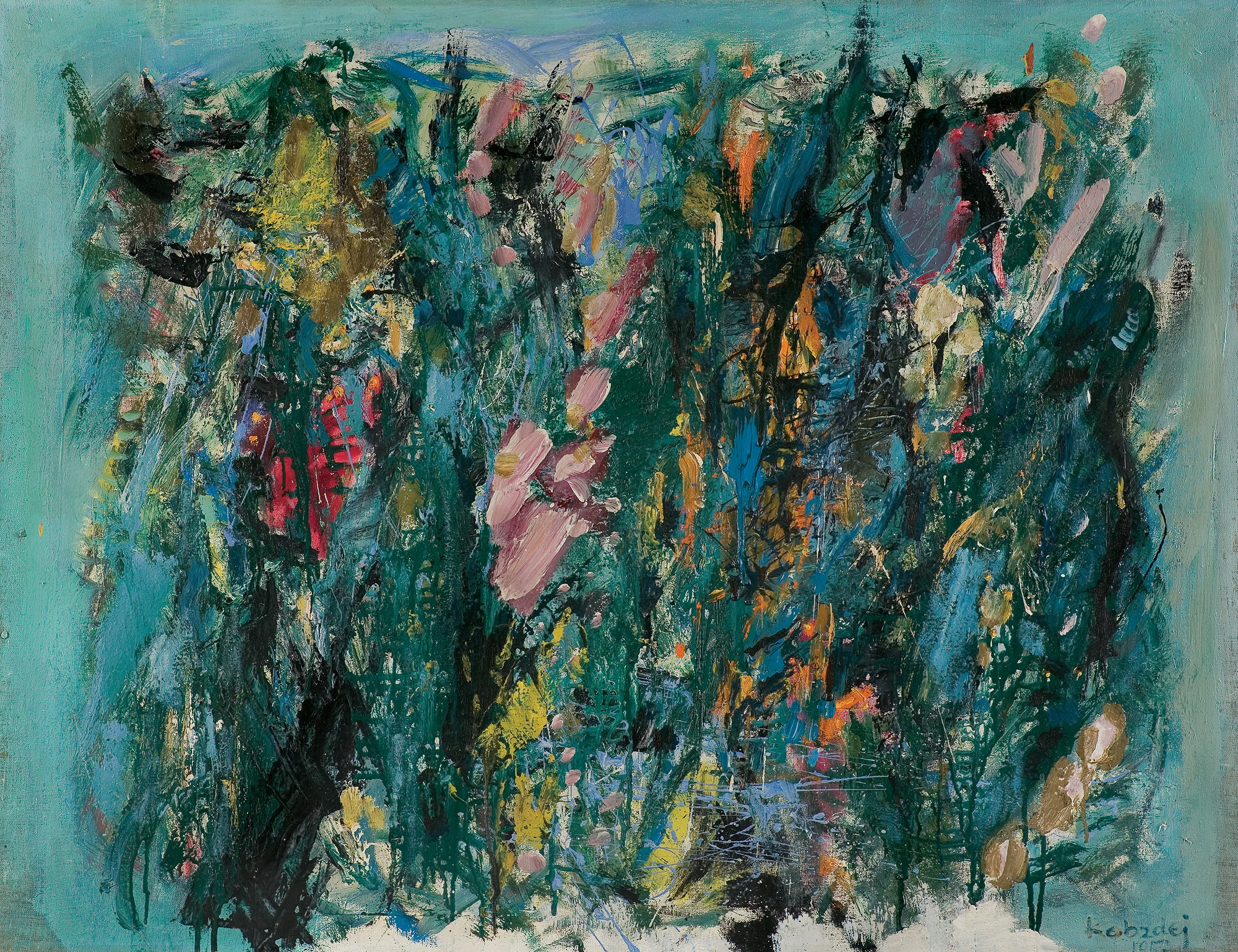 Aleksander Kobzdej (Olesko na Ukrainie 12 IX 1920 - Warszawa 25 IX 1972) od wczesnego dzieciństwa mieszkał we Lwowie, gdzie w 1939 zdał maturę. Równolegle z nauką w szkole średniej uczył się prywatnie rysunku i rzeźby. Jesienią 1939 rozpoczął studia architektoniczne na Politechnice Lwowskiej i jednocześnie zaczął malować pod okiem Władysława Lama. Pod obiema okupacjami, sowiecką i hitlerowską, podejmował prace zarobkowe, kontynuując w miarę możności studia. W 1944 został wywieziony na roboty przymusowe do Wiednia, skąd uciekł do Jugosławii. W 1945 wrócił do kraju. Krótko studiował w ASP w Krakowie u Eugeniusza Eibischa, by już pod koniec 1945 objąć stanowisko asystenta swego dawnego nauczyciela, Władysława Lama, na Wydziale Architektury Politechniki Gdańskiej. Pracując ukończył politechnikę z dyplomem inżyniera i od 1947 zaczął uczyć w PWSSP w Sopocie. Pracował tam do 1951, kiedy to przeniósł się do ASP w Warszawie, gdzie nauczał aż do śmierci. W latach 40. ulegał w swych próbach malarskich wpływom koloryzmu, kierunku triumfującego zarówno w Akademii krakowskiej, gdzie zaczynał studia, jak i w „szkole sopockiej“, w której sam uczył. Koloryzm Kobzdeja był jednakże poddany dyscyplinie skupionej, syntetycznej formy o rodowodzie sięgającym kubizmu i ekspresjonizmu. W pierwszej połowie lat 50. Kobzdej należał do koryfeuszy socrealizmu. Na ile artysta nie unikał, nawet w tym czasie, ironicznej refleksji, świadczy dyptyk złożony z obrazów Podaj cegłę i Ceglarki, w którym skonfrontował postulatywną i rzeczywistą stronę trudu codziennej pracy. W latach 50. rozwinął też swój talent rysownika, tworząc cykle reportażowych notatek z podróży do Chin i Wietnamu. Od 1956 radykalnie zmienił styl, doświadczając odtąd rozmaitych odmian informelu i malarstwa materii. Eksperymentując z fakturą i przestrzenią doszedł do swego głównego motywu, m stał się wielki cykl „Szczelin“, tworzonych od 1966. Ich syntezą stały się obiekty malarskie zwane „Hors cadre“.