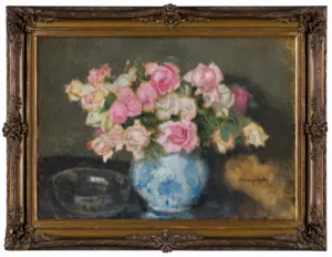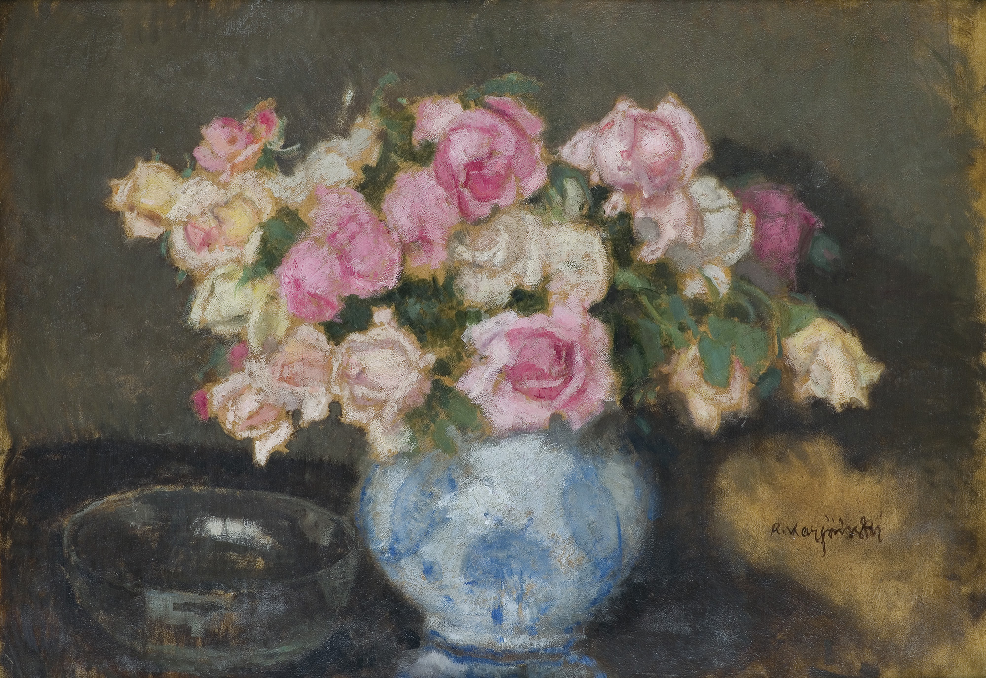 Alfons Karpiński (Rozwadów, dziś dzielnica Stalowej Woli 1875 - Kraków 1961) w latach 1891-1899 studiował w krakowskiej Szkole Sztuk Pięknych pod kierunkiem Floriana Cynka, Izydora Jabłońskiego, Władysława Łuszczkiewicza i Leona Wyczółkowskiego, a następnie kształcił się jeszcze u Antona Ažbégo w Monachium (1903), u Kazimierza Pochwalskiego w Wiedniu, a od 1907 także w Paryżu. Podróżował do Włoch i Londynu. Stale mieszkał w Krakowie; związany z tamtejszym środowiskiem skupionym wokół „Zielonego Balonika” projektował dekoracje do przedstawień kabaretu. Należał do Tow. Artystów Polskich „Sztuka”, grupy „Zero”, był członkiem wiedeńskiego stowarzyszenia „Secesja” i krakowskiego TPSP. Uczestniczył w wielu wystawach w kraju i za granicą. W czasie I wojny światowej służył w armii austriackiej. Na bogatą twórczość artysty składają się wczesne sceny rodzajowe z podkrakowskiej wsi, pejzaże i portrety, wśród nich zwłaszcza portrety kobiece, które przyniosły mu szczególną popularność. Z czasem głównym – obok portretu – tematem jego obrazów stały się martwe natury z kwiatami, dekoracyjne kompozycje o stonowanej gamie barwnej. Artysta zajmował się także grafiką i ilustratorstwem.