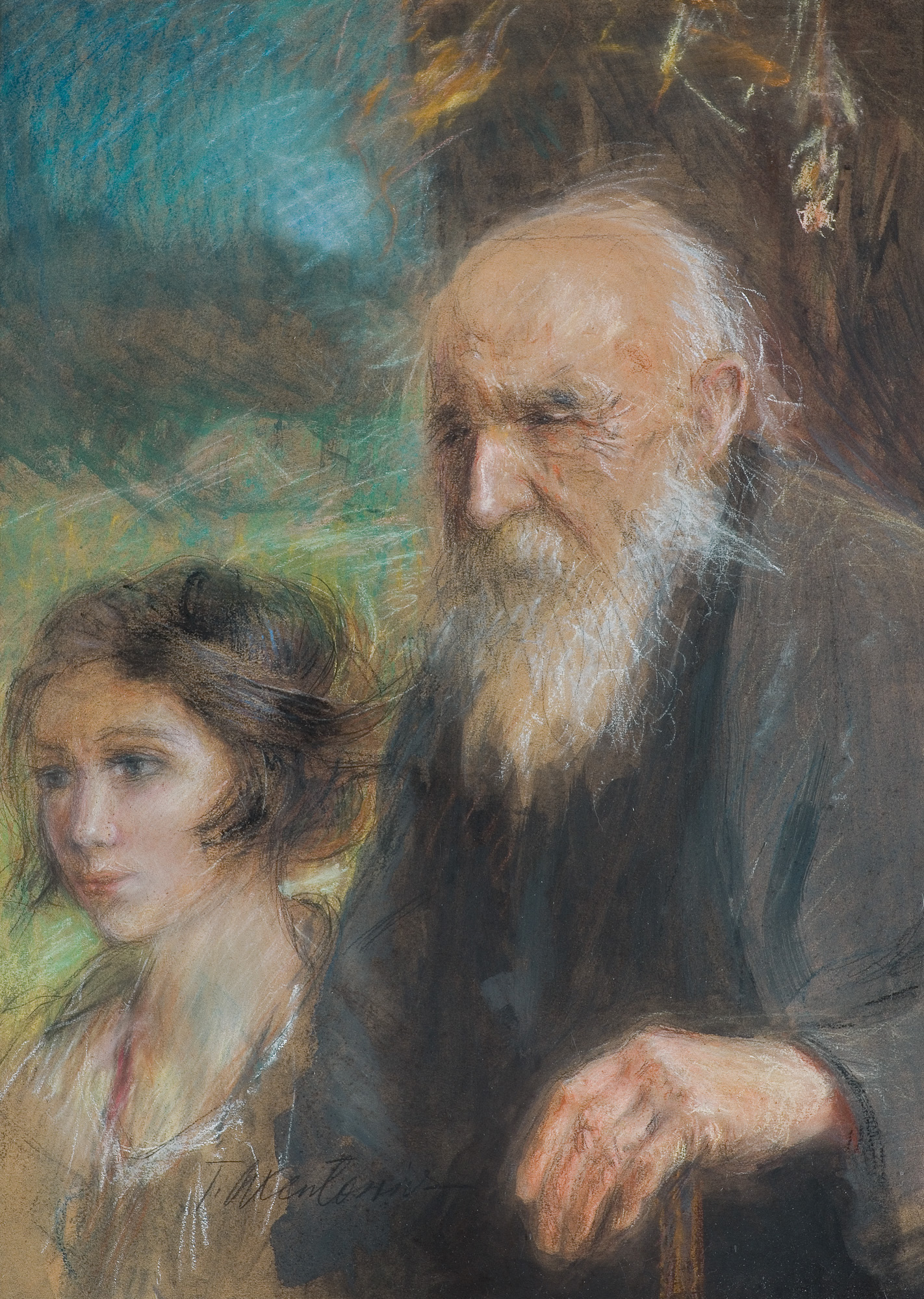 Teodor Axentowicz (Braszów w Siedmiogrodzie 1859 - Kraków 1938) – malarz, pastelista, litograf – był jednym z najbardziej znanych i cenionych malarzy polskich. Kształcił się w Akademii Sztuk Pięknych w Monachium pod kierunkiem Gabriela Hackla, Aleksandra Wagnera, Gyuli Benczúra. Studia uzupełniał w Paryżu, gdzie następnie przebywał przez lat kilkanaście. Brał udział w paryskich Salonach; w 1890 otrzymał członkostwo Société Nationale des Beaux-Arts. W tym czasie wielokrotnie wyjeżdżał również do Londynu. W 1895 powrócił do kraju i zamieszkał na stałe w Krakowie, powołany na profesora tamtejszej Szkoły Sztuk Pięknych (od 1900 Akademii). W uczelni tej nauczał nieprzerwanie do 1934, dwukrotnie pełniąc funkcję rektora (lata 1910-11 oraz 1927-28). Był jednym z członków-założycieli Towarzystwa Artystów Polskich „Sztuka”, członkiem wiedeńskiej „Secesji” i współpracownikiem jej pisma „Ver Sacrum”. Powodzenie przyniosły mu zwłaszcza idealizowane wizerunki wytwornych dam oraz wdzięczne portrety dziecięce. Malował też obrazy o tematyce rodzajowej; był jednym z pierwszych malarzy Huculszczyzny i Hucułów. Tworzył obrazy historyczne i kompozycje symboliczne związane z upływem czasu, przemijaniem, starością. We wczesnym, monachijskim okresie były to obrazy utrzymane w duchu akademickiego realizmu; na późniejszą twórczość artysty wywarło wpływ angielskie malarstwo XVIII w. oraz dzieła malarzy współczesnych - Boldoniego, Whistlera, Sargenta. Jego obrazy cechuje dekoracyjność, elegancja, świeżość subtelnej gamy kolorów i delikatna secesyjna stylizacja. Początkowo malował olejno i akwarelą, a po 1890 przede wszystkim mistrzowsko opanowaną techniką pastelu. Zajmował się ilustratorstwem i litografią, projektował plakaty wystaw „Sztuki”.