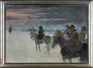 Jerzy Kossak (Kraków 1886 - Kraków 1955)- syn Wojciecha, wnuk Juliusza Kossaków - od wczesnego dzieciństwa malował pod kierunkiem ojca i dziadka. Kontynuator i naśladowca ich sztuki tworzył sceny batalistyczne, historyczne i rodzajowe z wszechobecnym motywem konia. Malował obrazy z powstania listopadowego, wojen napoleońskich oraz wiele scen z wojny 1920 roku. Najbardziej znaną jego kompozycją tego rodzaju był Cud nad Wisłą. Malował też liczne Pogonie i Pościgi ułanów za kozakami, Napady wilków, Polowania i Wesela. Tematyka tych prac sprawia, że stale cieszą się zainteresowaniem zbieraczy i publiczności, zawsze tłumnie odwiedzającej wystawy malarstwa Kossaków.