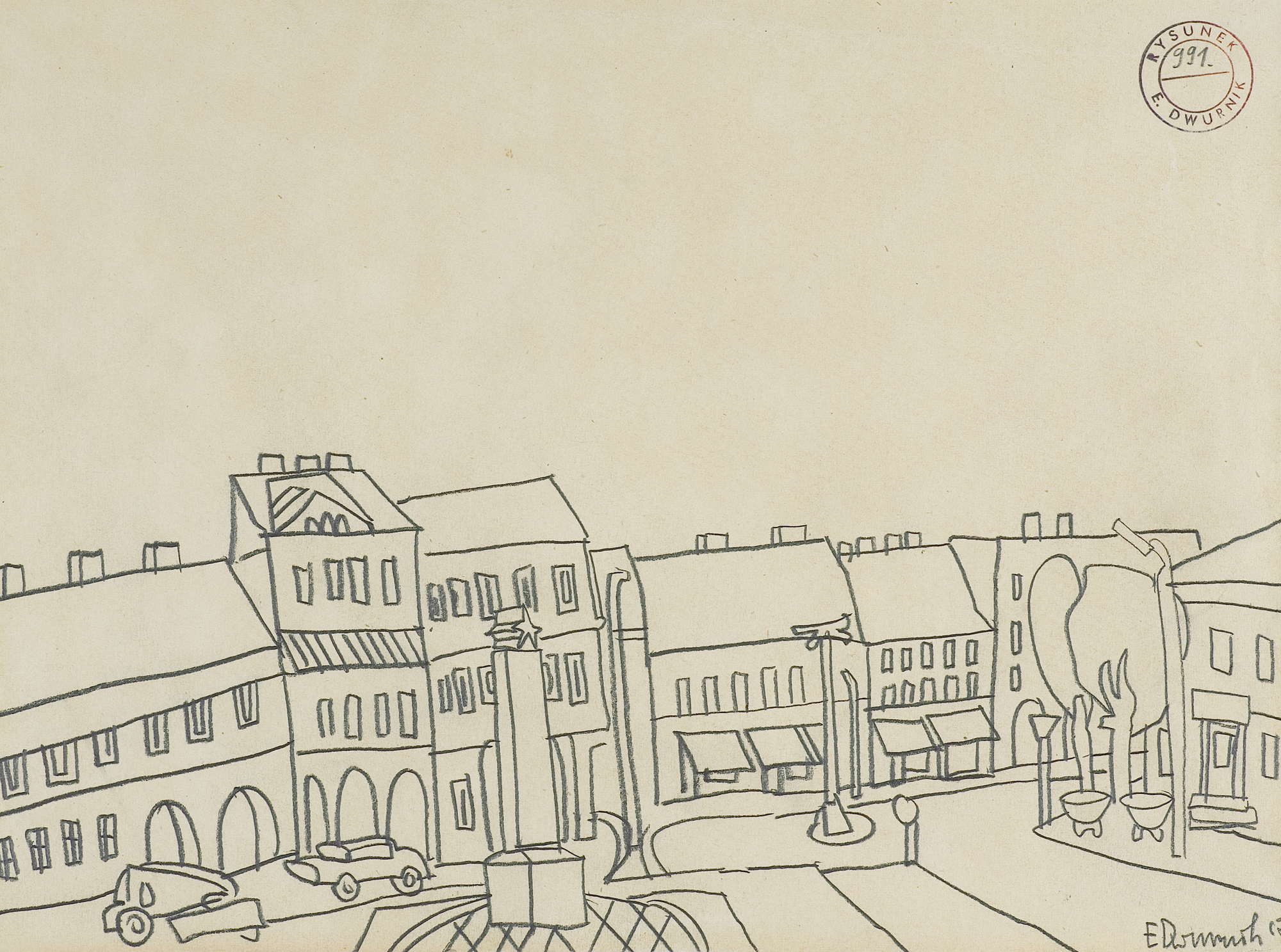 Edward Dwurnik (Radzymin 19 IV 1943 - Warszawa 28 X 2018) studiował malarstwo w ASP w Warszawie (1963-1970), jednak jako swego „mistrza“ wymienia Nikifora. Jego to prace, zobaczone po raz pierwszy w 1965, zainspirowały ówczesnego studenta III roku do narysowania pierwszych prac z cyklu „Podróże autostopem“, które kontynuował w nastepnych latach. W 1972-1978 powstawał cykl „Sportowcy“, w którym portretowane były, dodajmy - kąśliwie, typowe postaci z lat 70. Równolegle od 1975 powstawał cykl „Robotnicy“, który kulminował w okresie „Solidarności“ 1980-1981. Za prace z tego cyklu Dwurnik otrzymał w 1981 Nagrodę Krytyki Artystycznej im. Cypriana Kamila Norwida, natomiast za obrazy z cyklu „Warszawa“ (1981), proroczo zapowiadające stan wojenny - Nagrodę Kulturalną „Solidarności“ podziemnej w 1983. W latach 80. malarstwo Dwurnika przybrało wyraz ekspresyjny i dramatyczny. Powstające w tej dekadzie obrazy miały niejednokrotnie wymowę polityczną, przybierały też kostium historyczny, tak czy inaczej odnoszący się do współczesnych spraw i realiów. Cykl „Droga na Wschód“ (1989-91) upamiętniał ofiary stalinizmu, natomiast cykl „Od Grudnia do Czerwca“ (1990-94) - ofiary stanu wojennego. Zarówno ideowe, jak i czysto malarskie walory tych prac przyniosły artyście ogromne uznanie, zarówno w kraju jak i za granicą. Jego wyrazem była prestiżowa nagroda Fundacji Coutts & Co w Zurychu (1992). W latach 90. powstają cykle będące kontynuacją „Podróży autostopem“: „Niebieskie miasta“ (od 1993) i „Diagonale“ (od 1996), jak również kompozycje nowego typu, jak widoki morskie (cykl „Błękitne“, 1992-93) czy cykl „Wyliczanka“ (1996-99). Artysta wiele wystawia, miał ok. 100 wystaw indywidualnych w Polsce i za granicą, brał też udział w licznych wystawach i festiwalach krajowych i międzynarodowych, m.in.: X Biennale Sztuki Współczesnej, Menton 1974, Documenta 7, Kassel 1982, 5th Biennale, Sydney 1985, XIX Biennale Sztuki, Sao Paulo 1987; Olimpiada Sztuki, Seul 1988. Równolegle z malarstwem uprawiał rysunek, collage, grafikę warsztatową (litografia, techniki metalowe, kserografia, stemple) i użytkową (ilustracja, plakaty do własnych wystaw indywidualnych).