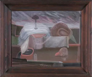 Juliusz Narzyński (Warszawa 1934, Warszawa 2020) studiował na Wydziale Malarstwa Akademii Sztuk Pięknych w Warszawie, dyplom w pracowni prof. Artura Nachta Samborskiego uzyskał w roku 1959. W 1970 przebywał w Holandii na stypendium artystycznym rządu holenderskiego. Od 1973 kierował pracownią malarstwa PWSSP w Łodzi, następnie został profesorem tej uczelni (obecnie Akademia Sztuk Pięknych im.Wł. Strzemińskiego). Uprawia malarstwo utrzymane w konwencji nadrealistycznej, które przechodzi ewolucje i zmiany a jego nadrzędnym celem jest stworzenie symbolicznej wizji świata. Początkowo artysta pozostawał pod pewnym urokiem informelu, z czasem jego malarstwo zaczęło nabierać dynamiki i ostrości wyrazu. Mięsiste, biologiczne formy zderzały się ze zgeometryzowanymi przedmiotami wirującymi w nieokreślonej przestrzeni. W połowie lat 70-tych nastąpił zwrot w stronę malarstwa kameralnego. Dynamika form ustępuje miejsca płasko malowanej płaszczyźnie, kontur nabiera płynności, kolor zaś służy do odrealnienia przedmiotów, wprowadza widza w liryczny, poetycki świat. Jest laureatem wielu nagród, m.in. nagrody Cypriana Kamila Norwida (1969) i nagrody Prezydenta miasta stołecznego Warszawy (1974). Brał udział w wielu wystawach krajowych i zagranicznych. Jego prace znajdują się w zbiorach muzealnych i kolekcjach prywatnych w kraju i zagranicą.