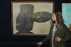 Zdzisław Beksiński (Sanok 24 II 1929 - Warszawa 21 II 2005) studiował w latach 1947-1952 na Wydziale Architektury Politechniki Krakowskiej. Był artystą samoukiem, który osiągnął niekwestionowaną pozycję w polskiej sztuce współczesnej, potwierdzoną obecnością jego prac na prestiżowych wystawach i w kolekcjach muzealnych. Początkowo zajmował się fotografią, którą interesował się od lat studenckich, po 1956 zyskując uznanie jako twórca fotogramów o estetyce opartej o efekty fakturowe. W latach 1958-1962 tworzył abstrakcyjne obrazy-reliefy o bogatej fakturze, głównie metalowe, będące odmianą malarstwa materii. Pod koniec tego okresu powstawały ażurowe formy o kształtach figur i pełnoplastyczne rzeźby w metalu. Kolejnym etapem jego twórczości były lata 1962-1974, kiedy poświęcał się głównie rysunkowi. W latach 60. rysował piórkiem i tuszem figuralne kompozycje odznaczające się karykaturalną deformacją postaci. Od końca lat 60. tworzył rysunki węglem i kredkami, będące monochromatyczną odmianą jego równoległej twórczości malarskiej. Od 1974 zajmował się niemal niepodzielnie malarstwem. Jego charakterystyczny styl bazował na perfekcji technicznej, której towarzyszyła niezwykłość wizji. Malował świat po katastrofie, naznaczony piętnem śmierci i rozpadu. Jego obrazy zaludniają postaci i stwory o ludzkich wprawdzie bądź zwierzęcych kształtach, lecz o cechach fantomów, automatów lub rozpadających się trucheł. Artysta nie nadawał swym obrazom i rysunkom tytułów (poza porządkującymi symbolami), akcentując w ten sposób swój brak zainteresowania dla literackiej strony przedstawień. Sam mówił, że malując całkowicie poddaje się wizji, „fotografuje“ ją. W ostatnich latach włączył do swego warsztatu artystycznego elektroniczne techniki generowania obrazu, które wykorzystywał do tworzenia komputerowych fotomontaży. Sztuka Beksińskiego, wielokrotnie wystawiana i omawiana, budzi skrajne emocje wśród znawców i publiczności.