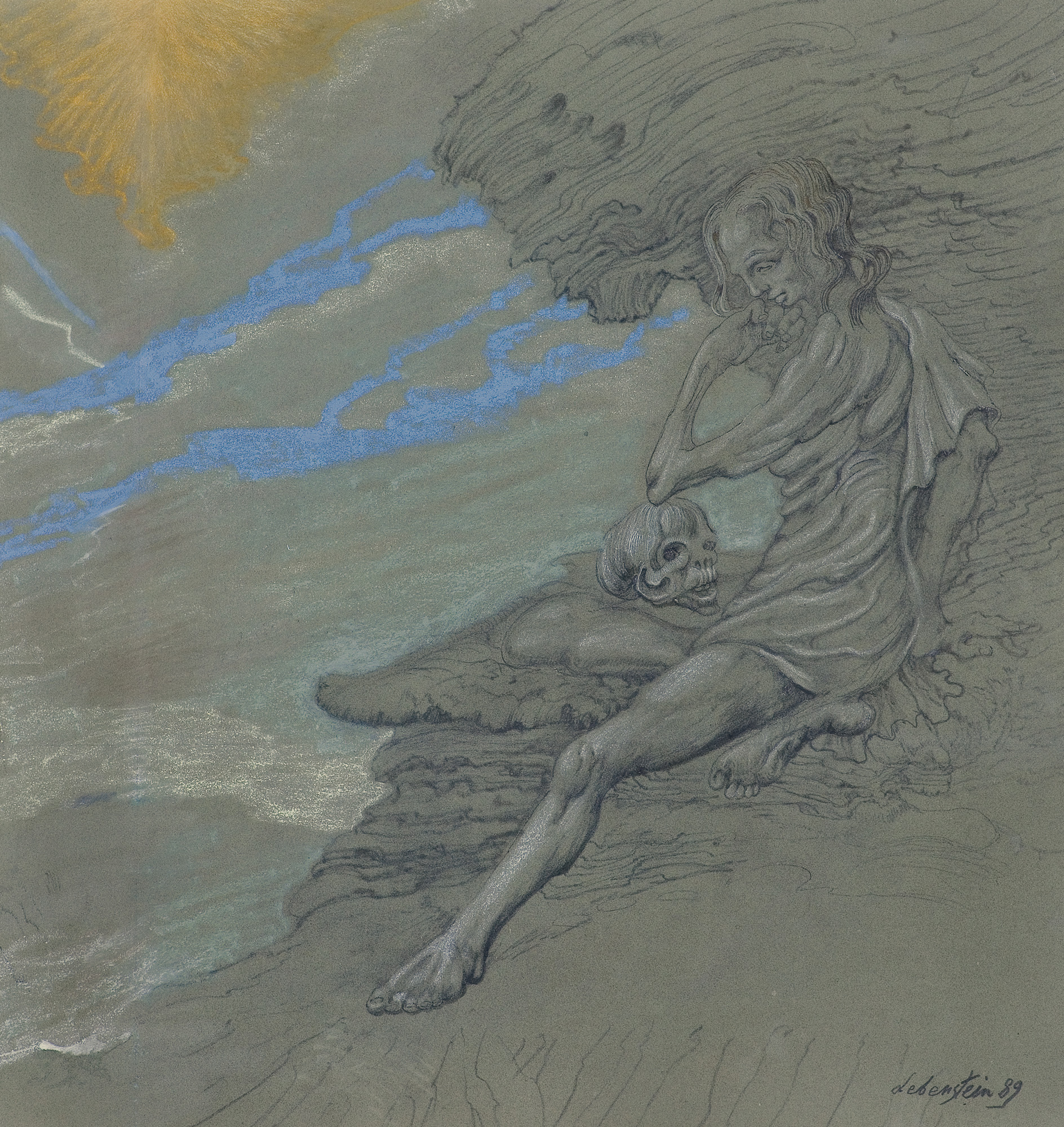 Jan Lebenstein (Brześć Litewski 1930 - Kraków 1999) w latach 1948-1954 studiował malarstwo w ASP w Warszawie pod kierunkiem prof. Eugeniusza Eibischa i Artura Nachta-Samborskiego. W 1955 wziął udział w wystawie w warszawskim Arsenale. Zaprzyjaźniony w czasie studiów z Mironem Białoszewskim, swą pierwszą wystawę indywidualną pokazał w 1956 w Teatrze na Tarczyńskiej. W 1959 zdobył Grand Prix de la Ville de Paris na I Biennale Młodych w Paryżu i w tym roku przeniósł się na stałe do Paryża. Po seriach "figur kreślonych" (na papierze milimetrowym) i "figur hieratycznych" z lat 1955-1958 maluje cykl "figur osiowych" (1958-1962), które wystawia w Paryżu i USA. Równolegle w 1960 zaczyna rysowane "karnety", rodzaj dziennika, który w przyszłości dostarczy motywów wykorzystanych w obrazach. W latach 1964-1965 maluje "Bestiarium", cykl fakturowych, archaizowanych stworów przypominających prehistoryczne wykopaliska. Bezpośrednio po nich wprowadza do swych obrazów postaci ludzkie i fantastyczne, odgrywające sceny ni to mitologiczne, ni to ze snu, często przesycone erotyką. W 1970 projektuje witraże dla Centre du Dialogue w Paryżu. W W 1971 otrzymuje obywatelstwo francuskie 1974 powstają gwasze inspirowane Folwarkiem zwierzęcym George'a Orwella. W latach 1976-1989 tworzy wyłącznie w technice gwaszu i pastelu, podejmując tematykę mitologiczną i zaczerpniętą z Biblii: cykle ilustracji do Księgi Hioba (wyd. 1979) i do Apokalipsy (wyd. 1986) w nowych przekładach Czesława Miłosza. W 1989 powraca do malarstwa olejnego (cykl "Pergamon"). Artysta otrzymał m. in. nagrodę Fundacji im. Alfreda Jurzykowskiego w 1976, Nagrodę Muzeum Archidiecezji Warszawskiej w 1985, Nagrodę im. Jana Cybisa w 1987.