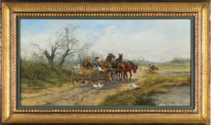 Ludwik Gędłek (Kraków 1847 - Wiedeń 1904) rozpoczął studia artystyczne w krakowskiej Szkole Sztuk Pięknych pod kierunkiem Władysława Łuszczkiewicza, a w latach 1872-1877 kontynuował je w Akademii wiedeńskiej u Eduarda Lichtenfelsa i Carla Wurzingera. Już w roku 1863 debiutował na wystawie w krakowskim TPSP, gdzie później wystawiał jeszcze kilkakrotnie. Stale mieszkał w Wiedniu, skąd wysyłał obrazy także na wystawy do TPSP we Lwowie, do Salonu Aleksandra Krywulta w Warszawie oraz do Drezna. Malował przede wszystkim sceny rodzajowe i batalistyczne z częstym motywem koni, a także krajobrazy, głównie z okolic Krakowa. Obrazy artysty znajdują się, m.in. w Muzeum Narodowym w Warszawie, Lwowskiej Galerii Obrazów i Polskim Muzeum w Chicago
