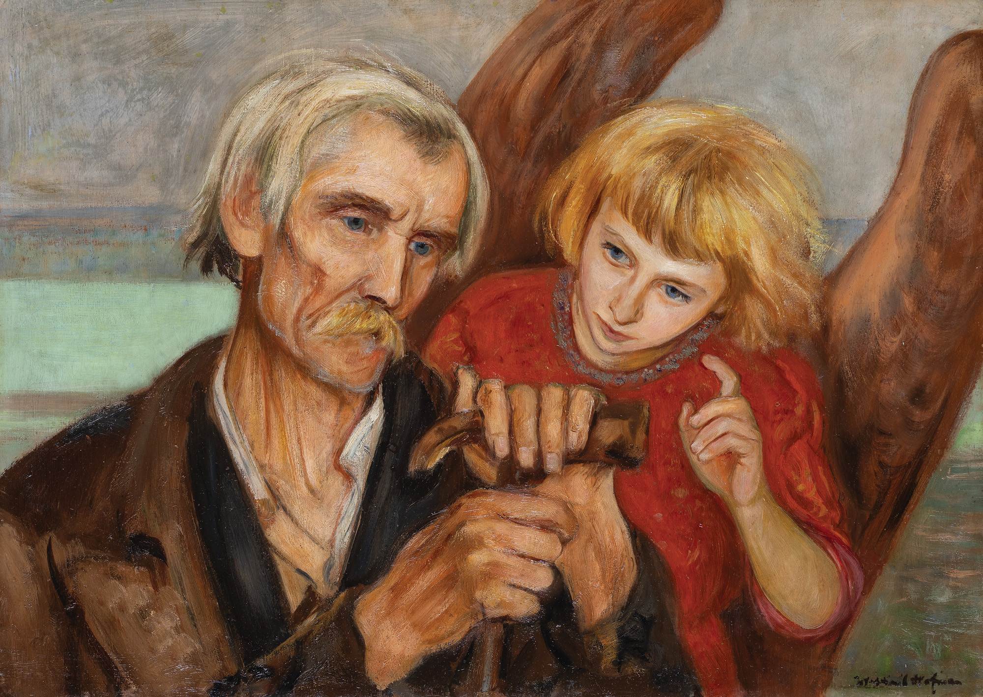 Wlastimil Hofman / Vlastimil Hofmann (Praga 1881 - Szklarska Poręba 1970) studiował w krakowskiej Szkole Sztuk Pięknych - początkowo pod kierunkiem Floriana Cynka, później także u Jana Stanisławskiego, Leona Wyczółkowskiego i Jacka Malczewskiego. W latach 1899-1902 uczył się jeszcze u Jeana Léona Gérôme’a w paryskiej École des Beaux-Arts. W czasie I wojny światowej przebywał w Pradze i w Paryżu; od 1920 stale mieszkał w Krakowie. Dużo wystawiał; należał do wielu stowarzyszeń twórczych - był współzałożycielem „Grupy Pięciu” (1905) i „Grupy Zero” (1908), członkiem Związku Artystów Czeskich „Manes”, a od 1911 członkiem Tow. Artystów Polskich „Sztuka”. W czasie II wojny światowej poprzez ZSRR i Turcję przedostał się do Jerozolimy, skąd w roku 1946 wrócił do Krakowa. Od roku 1947 stale mieszkał w Szklarskiej Porębie. Hofman malował przede wszystkim fantastyczno-symboliczne kompozycje o motywach ludowych oraz sceny rodzajowe, portrety i pejzaże. Jego obrazy mimo bliskich analogii i powiązań ze sztuką Malczewskiego odznaczają się zawsze indywidualnym charakterem, stylem i nastrojem.