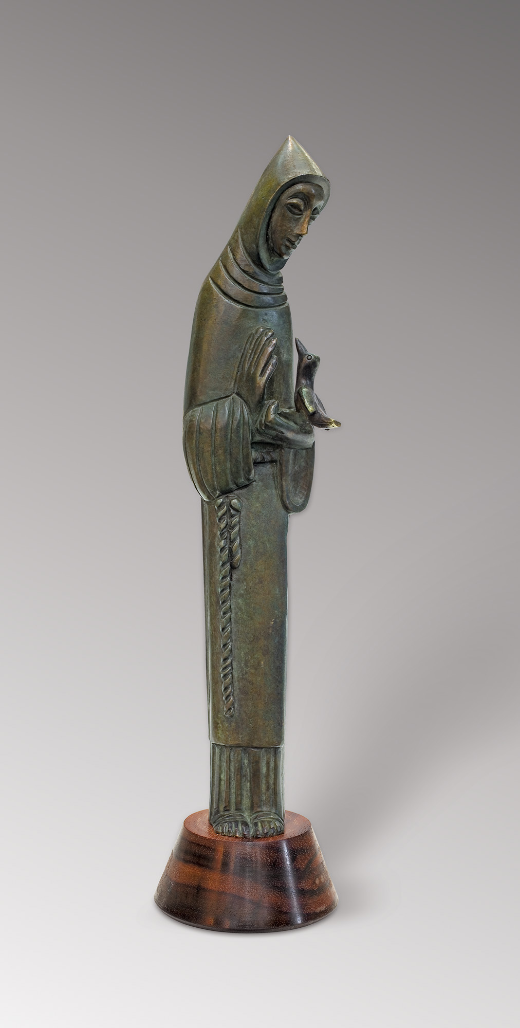 brąz patynowany, drewno