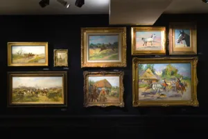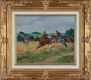 Jerzy Kossak (Kraków 1886 - Kraków 1955)- syn Wojciecha, wnuk Juliusza Kossaków - od wczesnego dzieciństwa malował pod kierunkiem ojca i dziadka. Kontynuator i naśladowca ich sztuki tworzył sceny batalistyczne, historyczne i rodzajowe z wszechobecnym motywem konia. Malował obrazy z powstania listopadowego, wojen napoleońskich oraz wiele scen z wojny 1920 roku. Najbardziej znaną jego kompozycją tego rodzaju był Cud nad Wisłą. Malował też liczne Pogonie i Pościgi ułanów za kozakami, Napady wilków, Polowania i Wesela. Tematyka tych prac sprawia, że stale cieszą się zainteresowaniem zbieraczy i publiczności, zawsze tłumnie odwiedzającej wystawy malarstwa Kossaków.