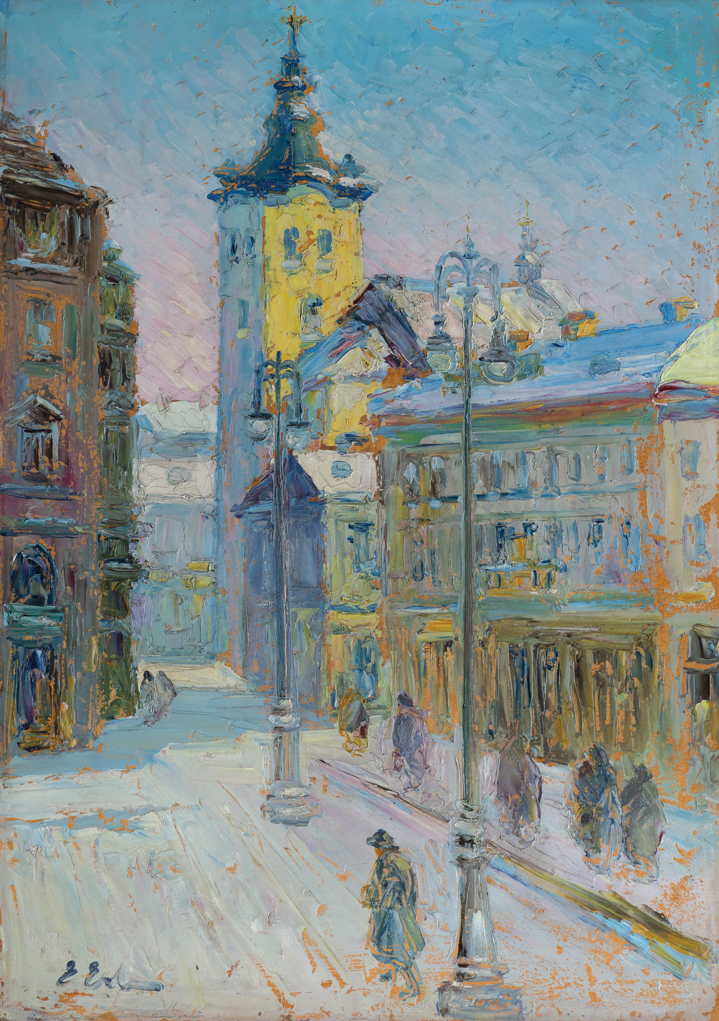 Erno Erb (Lwów 1878 lub 1890 - Lwów 1943) był artystą związanym ze środowiskiem lwowskim; mieszkał we Lwowie i w Truskawcu. Malował motywy miejskie, sceny rodzajowe, targowiska, charakterystyczne typy ukraińskich chłopów i Żydów, pejzaże i martwe natury. Posługiwał się pastelami, akwarelą i farbami olejnymi. Jego olejne obrazy, odznaczające się bogatą fakturą grubo kładzionej farby, bywały porównywane z pracami niemieckiego malarza Maxa Liebermana. Artysta wielokrotnie wystawiał w Towarzystwie Przyjaciół Sztuk Pięknych we Lwowie i w Krakowie oraz w warszawskiej Zachęcie. W roku 1929 brał udział w Powszechnej Wystawie Krajowej w Poznaniu, a w roku 1932 w Wystawie Sztuki Polskiej w Buffalo.