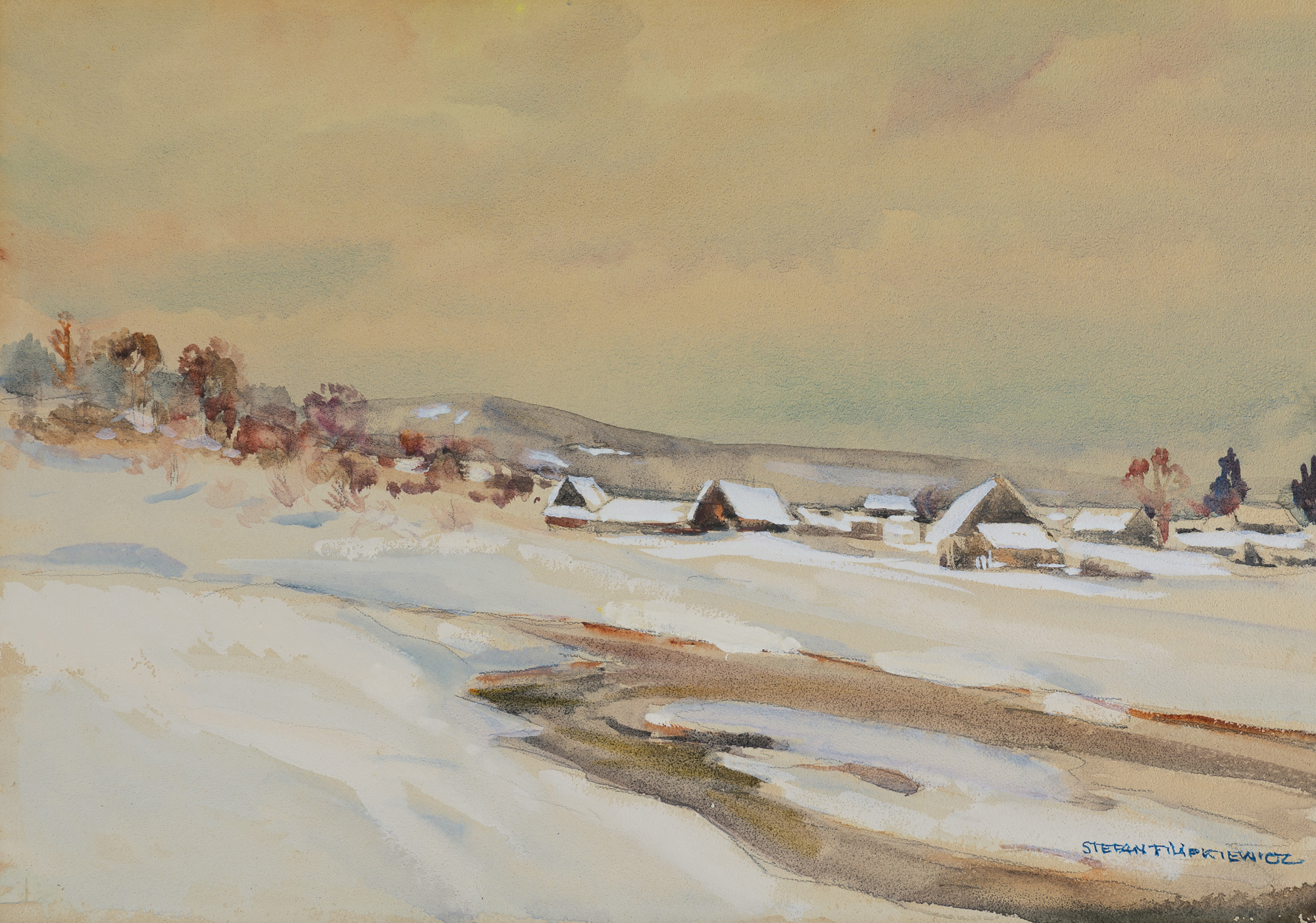 Stefan Filipkiewicz (Tarnów 1879 - obóz koncentracyjny w Mauthausen-Gusen 1944) - malarz i grafik, pejzażysta; w latach 1900-1908 studiował w krakowskiej Akademii Sztuk Pięknych u Józefa Mehoffera, Leona Wyczółkowskiego, Józefa Pankiewicza i Jana Stanisławskiego. Już w czasie studiów brał udział w wystawach krakowskiego TPSP, później uczestniczył w wielu wystawach krajowych i zagranicznych. Był przede wszystkim pejzażystą, uznawanym za jednego z najwybitniejszych uczniów Stanisławskiego i jego szkoły pejzażu. Malował krajobrazy tatrzańskie i podhalańskie, pejzaże z podkrakowskiego Radziszowa, gdzie spędzał wakacje, a w latach późniejszych także widoki nadmorskie. Malował również dekoracyjne martwe natury z bukietami kwiatów. Zajmował się grafiką, ilustracją, projektowaniem plakatów i medali. Od roku 1908 był członkiem Towarzystwa Artystów Polskich „Sztuka”. W latach 1913-1914 prowadził kurs malarstwa dekoracyjnego w Szkole Przemysłowej w Krakowie, od 1930 wykładał w ASP w Krakowie, a od 1937 był profesorem tej uczelni. Uczestnik wielu wystaw; w 1929 roku otrzymał złoty medal na Powszechnej Wystawie Krajowej w Poznaniu, w 1933 roku nagrodę Polskiej Akademii Umiejętności za całokształt twórczości. W latach 1914-1917 służył w Legionach, w czasie drugiej wojny światowej działał w konspiracji. Był Sekretarzem Komitetu Obywatelskiego do Spraw Opieki nad Uchodźcami Polskimi na Węgrzech i Placówki w Budapeszcie - przedstawicielstwa Rządu Rzeczypospolitej Polskiej na uchodźstwie. Aresztowany przez gestapo, prawdopodobnie z końcem lipca 1944 został wywieziony do obozu w Mauthausen-Gusen, gdzie 23 sierpnia zginął zamordowany wraz z współpracownikami z konspiracji - Henrykiem Sławikiem, Edmundem Fietz-Fietowiczem, Kazimierzem Gurgulem i Andrzejem Pyszem.