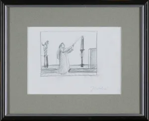 Jarosław Modzelewski (Warszawa 1955, mieszka w Warszawie) studiował malarstwo w ASP w Warszawie w latach 1975-1980, uzyskując dyplom w pracowni Stefana Gierowskiego. Od 1982 pracuje jako pedagog na macierzystym wydziale. W 1982 był współzałożycielem „Gruppy”, najważniejszego ugrupowania nurtu nowej ekspresji lat 80., działającego do 1992. W latach 1991-1996 wspólnie z Markiem Sobczykiem prowadził prywatną Szkołę Sztuki w Warszawie. Od wielu lat współpracuje z Galerią Zderzak w Krakowie. W początkowym okresie twórczości skłaniał się ku abstrakcji, wykorzystywał uproszczone znaki i emblematy oraz sylwetki odbite z szablonu. W 1985 namalował cykl oparty na ilustracjach do podręczników języka rosyjskiego, obrazujący proste czynności, których czasownikowe określenia stanowią tytuły prac. W 1986-1989 powstawały obrazy utrzymane w konwencji realistycznej, jednak zarazem o surrealnej atmosferze uzyskiwanej różnymi metodami, np. przez dublowanie figur, ukazywanie postaci w sytuacji niepewności czy zagrożenia, zabiegi z przestrzenią. W grupie obrazów z 1988 artysta rezygnuje z postaci ludzkiej na rzecz wyjątkowego nasycenia emocją samej przestrzeni pejzaży i wnętrz. Około 1990 wraca do kompozycji akcentujących czynności wykonywane przez postaci, które często umieszczone są w pustej, zaledwie zasugerowanej, acz dominującej przestrzeni. Odrealnienia i monumentalności dodaje tym obrazom płaskie i rozległe kładzenie koloru.