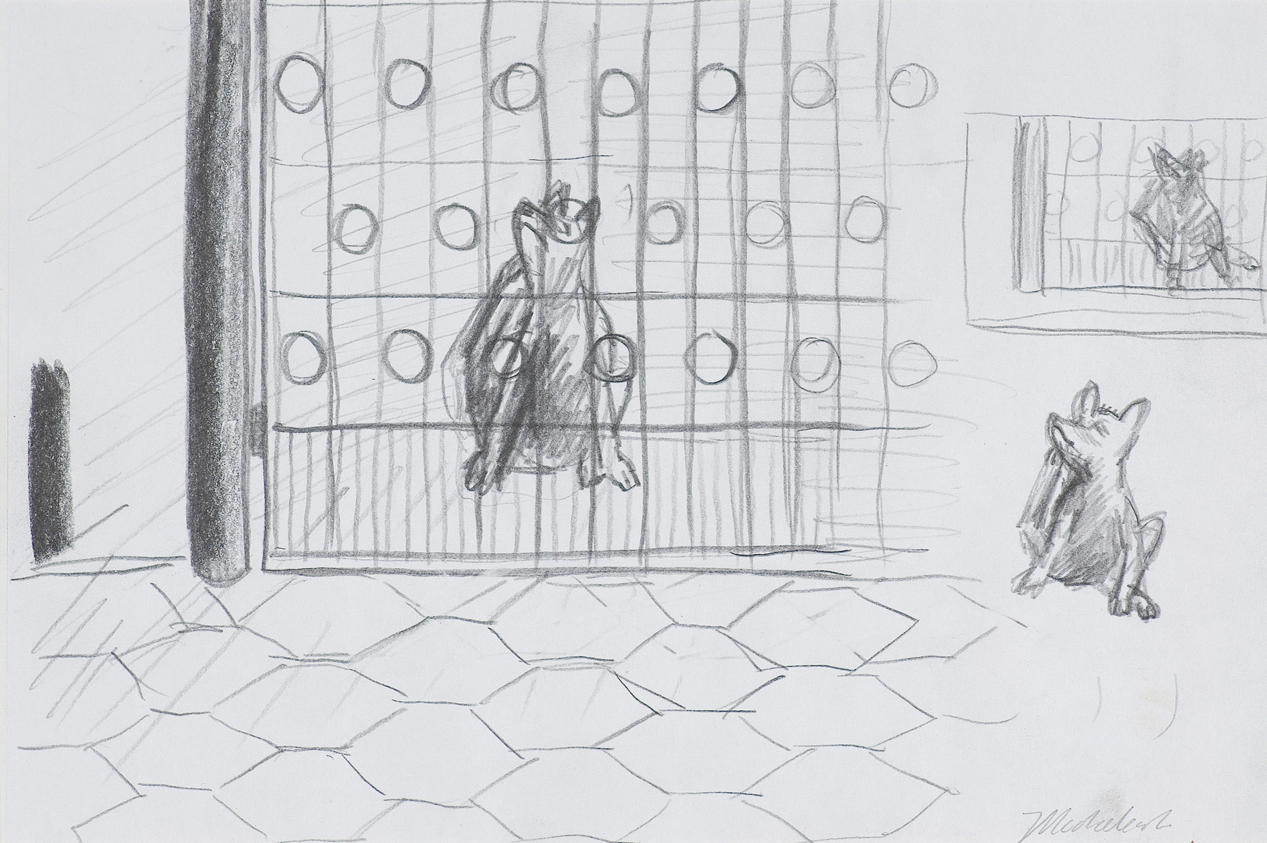 Jarosław Modzelewski (Warszawa 1955, mieszka w Warszawie) studiował malarstwo w ASP w Warszawie w latach 1975-1980, uzyskując dyplom w pracowni Stefana Gierowskiego. Od 1982 pracuje jako pedagog na macierzystym wydziale. W 1982 był współzałożycielem „Gruppy”, najważniejszego ugrupowania nurtu nowej ekspresji lat 80., działającego do 1992. W latach 1991-1996 wspólnie z Markiem Sobczykiem prowadził prywatną Szkołę Sztuki w Warszawie. Od wielu lat współpracuje z Galerią Zderzak w Krakowie. W początkowym okresie twórczości skłaniał się ku abstrakcji, wykorzystywał uproszczone znaki i emblematy oraz sylwetki odbite z szablonu. W 1985 namalował cykl oparty na ilustracjach do podręczników języka rosyjskiego, obrazujący proste czynności, których czasownikowe określenia stanowią tytuły prac. W 1986-1989 powstawały obrazy utrzymane w konwencji realistycznej, jednak zarazem o surrealnej atmosferze uzyskiwanej różnymi metodami, np. przez dublowanie figur, ukazywanie postaci w sytuacji niepewności czy zagrożenia, zabiegi z przestrzenią. W grupie obrazów z 1988 artysta rezygnuje z postaci ludzkiej na rzecz wyjątkowego nasycenia emocją samej przestrzeni pejzaży i wnętrz. Około 1990 wraca do kompozycji akcentujących czynności wykonywane przez postaci, które często umieszczone są w pustej, zaledwie zasugerowanej, acz dominującej przestrzeni. Odrealnienia i monumentalności dodaje tym obrazom płaskie i rozległe kładzenie koloru.