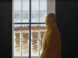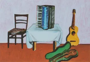 Jarosław Modzelewski (Warszawa 1955, mieszka w Warszawie) studiował malarstwo w ASP w Warszawie w latach 1975-1980, uzyskując dyplom w pracowni Stefana Gierowskiego. Od 1982 pracuje jako pedagog na macierzystym wydziale. W 1982 był współzałożycielem „Gruppy”, najważniejszego ugrupowania nurtu nowej ekspresji lat 80., działającego do 1992. W latach 1991-1996 wspólnie z Markiem Sobczykiem prowadził prywatną Szkołę Sztuki w Warszawie. Od wielu lat współpracuje z Galerią Zderzak w Krakowie. W początkowym okresie twórczości skłaniał się ku abstrakcji, wykorzystywał uproszczone znaki i emblematy oraz sylwetki odbite z szablonu. W 1985 namalował cykl oparty na ilustracjach do podręczników języka rosyjskiego, obrazujący proste czynności, których czasownikowe określenia stanowią tytuły prac. W 1986-1989 powstawały obrazy utrzymane w konwencji realistycznej, jednak zarazem o surrealnej atmosferze uzyskiwanej różnymi metodami, np. przez dublowanie figur, ukazywanie postaci w sytuacji niepewności czy zagrożenia, zabiegi z przestrzenią. W grupie obrazów z 1988 artysta rezygnuje z postaci ludzkiej na rzecz wyjątkowego nasycenia emocją samej przestrzeni pejzaży i wnętrz. Około 1990 wraca do kompozycji akcentujących czynności wykonywane przez postaci, które często umieszczone są w pustej, zaledwie zasugerowanej, acz dominującej przestrzeni. Odrealnienia i monumentalności dodaje tym obrazom płaskie i rozległe kładzenie koloru.