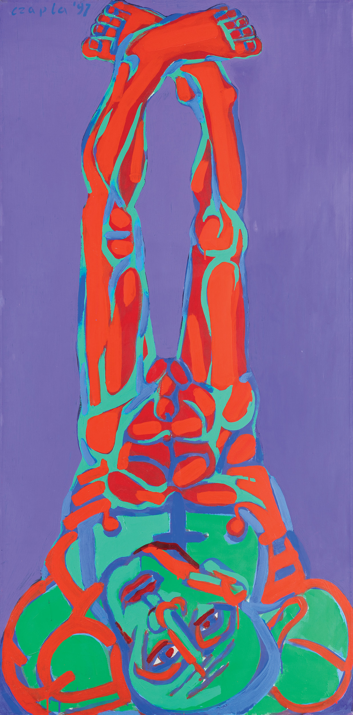 Marian Czapla (Gacki na Kielecczyźnie 28 VII 1946 - Warszawa 12 I 2016) studiował na Wydziale Malarstwa ASP w Warszawie w latach 1966-1972. Uzyskał dyplom w pracowni prof. Stefana Gierowskiego. W 1972 podjął pracę pedagogiczną w macierzystej uczelni. Od 1990 był profesorem, prowadził własną pracownię malarstwa. W latach 1974-1979 był członkiem grupy „Symplex S4“, którą tworzyło grono młodych absolwentów warszawskiej ASP, zainteresowanych możliwością kontynuowania tradycji polskiego koloryzmu z jednej, unizmu Władysława Strzemińskiego z drugiej strony. Początkowo tworzył abstrakcyjne kompozycje budowane z barwnych, zamaszyście kładzionych smug i plam. Od końca lat 70. w jego malarstwie przeważyła figuracja. Wyróżniającym się wątkiem twórczości Czapli były tematy i odniesienia religijne. Zainteresowania te pozostały aktualne w jego sztuce w latach 80., kiedy połączył je z tematyką aktualną (cykl poświęcony górnikom z „Wujka“). W pracach z lat 90. (cykle „Upadek“, „Ecce Homo“ i in.) artysta malował monumentalne figury o mocnej tektonice, podkreślonej dodatkowo zdecydowanymi barwami i konturami, ujęte w dynamicznych ruchach i skrętach ciała. Umieszczone zazwyczaj na płaskich tłach jednolitego koloru, w umownej przestrzeni, zdają się zmagać z ograniczającym je kadrem obrazu. W 2002 roku z okazji 30-lecia pracy twórczej Mariana Czapli Muzeum Narodowe w Kielcach przygotowało wystawę jego prac, której towarzyszył naukowo opracowany katalog.