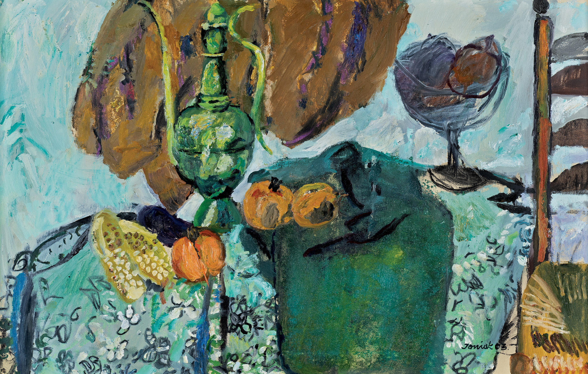 Juliusz Joniak (Lwów 19 XI 1925 - Kraków 2021) studiował w latach 1945-1949 na Wydziale Malarstwa i Grafiki Akademii Sztuk Pięknych w Krakowie pod kierunkiem Czesława Rzepińskiego i Konrada Srzednickiego. Dyplom uzyskał w 1955. Od 1950 pracuje jako pedagog w macierzystej uczelni, od 1980 był jej profesorem. W latach 1978-1981 był dziekanem Wydziału Malarstwa, a w 1981-1987 prorektorem ASP. We wczesnych latach uczestniczył w II, III i IV Ogólnopolskiej Wystawie Plastyki (1951-1954), a także w słynnej wystawie w warszawskim Arsenale (1955) i jej niemieckich edycjach pn. „Junge Generation“ w Berlinie i Lipsku (1956). W tym okresie reprezentował nurt malarstwa figuratywnego o wyraźnym rysunku i lekkich, płasko kładzionych polach koloru. W latach 60. malował tajemnicze, pełne metaforycznych odniesień Wnętrza i Martwe natury, w których chętnie eksperymentował z fakturą w duchu malarstwa materii. W kolejnej dekadzie zainteresował się kompozycjami figuralnymi (cykl „Kalejdoskop“ z przełomu lat 60. i 70.), tworząc pastisze klasycznego malarstwa z wielkich epok sztuki ("Akt z futrem wg Rubensa", 1973). Ten wątek z czasem przybrał formę monumentalnych poliptyków (seria "Karol IV z rodziną wg Goyi", 1979-1981; "Kobiety algierskie wg Delacroix", 1987). Równolegle od wczesnych lat 80. w malarstwie Joniaka dominuje pejzaż, głównie krajów południowych (Francja, Hiszpania, Włochy). Artysta czerpie swobodnie ze środków wypracowanych przez postimpresjonistów i ekspresjonistów przedwojennej Ecole de Paris, nade wszystko zaś obserwuje i zamyka w skończoną, piękną formę grę czystych kolorów w ostrym porannym świetle. Świeżość i czystość kolorów jest cechą wyróżniającą jego sztukę na tle rzeszy malarzy zafascynowanych urodą południowych plenerów. W 1995 artysta wygrał VII Festiwal Sztuki w Magné (Francja), co otworzyło mu drogę do honorowego członkostwa Académie Européenne des Arts w Paryżu.