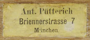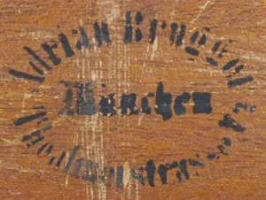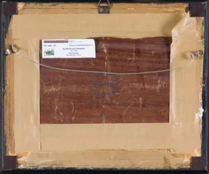 Na odwrocie, centralnie, owalny stempel firmy z materiałami malarskimi: Adrian Brugger | München | Theatineerstrasse[.]; ponadto notatki (ołówkiem) p.g.: Baron Hertling; pod pieczęcią (przeciwnie do kompozycji): N[..]by | P. PW; l.g. nalepka aukcyjna Agra-Art z 2013 roku.