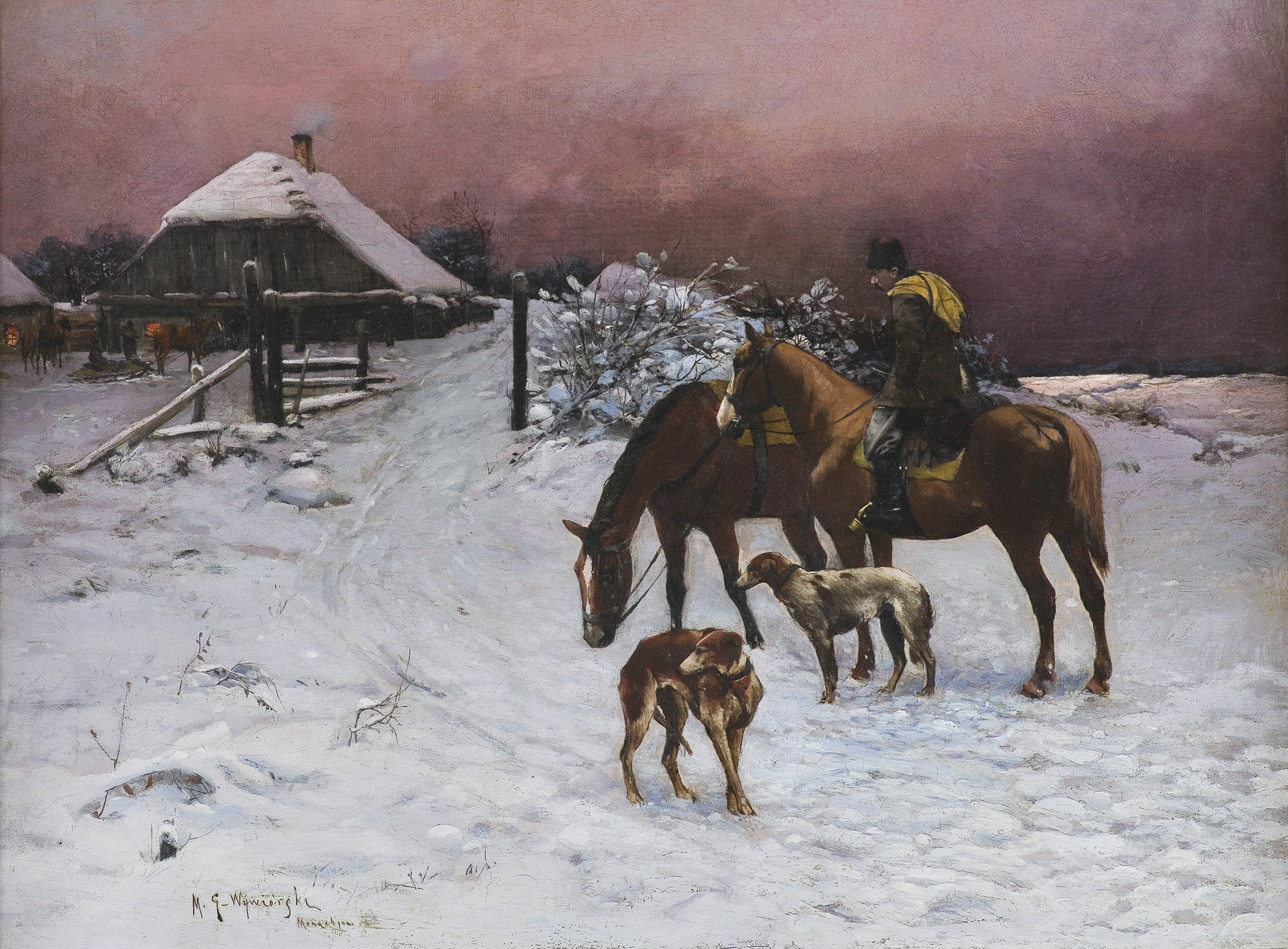 Wczesny - powstały w Monachium - obraz Wywiórskiego, wyraźnie wskazujący na jego fascynację malarstwem Józefa Brandta i Alfreda Wierusza-Kowalskiego, podziwianych mistrzów i nauczycieli młodego artysty.