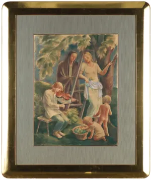 Wacław Borowski (Łódź 1885 - Łódź 1954) - malarz, grafik, scenograf - w latach 1905-1909 studiował w Krakowie malarstwo u Józefa Mehoffera w Akademii Sztuk Pięknych i, równolegle, historię sztuki na Uniwersytecie Jagiellońskim. W latach 1909-1913 przebywał w Paryżu. Zafascynowany dawnym malarstwem, kopiował wiele obrazów w muzeach. W okresie 1911-1914 podróżował do Włoch, studiując sztukę renesansu. Lata 1914-1919 spędził w Szwajcarii. Po powrocie do kraju mieszkał w Warszawie, gdzie w latach 1927-1933 był profesorem malarstwa i kompozycji w Instytucie Sztuk Plastycznych. Czynny na wielu polach, zajmował się malarstwem sztalugowym, dekoracyjnym malarstwem ściennym (m.in. polichromie na Zamku Królewskim, na Rynku Starego Miasta w Warszawie), uprawiał grafikę (trzy teki litografii), projektował plakaty, ilustracje książkowe i scenografie dla teatrów Warszawy, Krakowa i Łodzi. Był współzałożycielem i prezesem grupy „Rytm”, członkiem Stowarzyszenia Grafików „Ryt”, należał do Towarzystwa Artystów Polskich „Sztuka”. Wiele wystawiał tak w kraju jak i za granicą, a jego prace wielokrotnie odznaczane były medalami i nagrodami. Twórczość Borowskiego należy do „klasycyzującego” nurtu polskiego malarstwa, związanego m.in. z artystami skupionymi wokół grupy „Rytm”. Jego obrazy wyróżnia zarówno dążność do syntezy i swoistego uproszczenia a nawet pewnej geometryzacji form, jak miękkość i statyka układów kompozycyjnych, opartych na rytmie ruchu, linii i płaszczyzn. Wrażenie ciszy, ładu i harmonii podtrzymuje łagodne światło i subtelna, pastelowa kolorystyka współtworząca liryczny nastrój pogodnej melancholii.