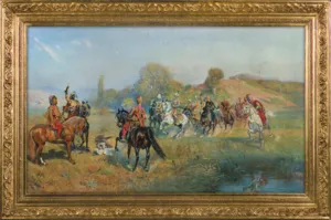 Wacław Pawliszak (Warszawa 1866 - Warszawa 1905) - malarz, rysownik, ilustrator; już jako dziecko wykazywał niezwykłe zdolności do rysunku; wcześnie też rozpoczął naukę - najpierw u Wojciecha Gersona w warszawskiej Klasie Rysunkowej, a w wieku czternastu lat w Szkole Sztuk Pięknych w Krakowie. Studiował pod kierunkiem Władysława Łuszczkiewicza i Floriana Cynka, był ulubionym uczniem Jana Matejki. Następnie uczył się jeszcze w Monachium u Józefa Brandta (1885) i w Paryżu u A. E. Carolusa-Duran (1886). Stale mieszkał w Warszawie, ale wiele podróżował; był w Rzymie, a przede wszystkim jeździł na Wschód, w którym „rozmiłował się do fanatyzmu„. Podróżował do Algieru, Tunisu, Maroka, Albanii, Dalmacji, Egiptu, Iranu i Iraku, jeździł na Krym i do Konstantynopola, wszędzie znajdując tematy do swych obrazów i z pasją kolekcjonera skupując wschodnie tkaniny i broń. Malował portrety, pejzaże i popularne wówczas „sceny rokokowe„, ale przede wszystkim obrazy historyczne i batalistyczne z dziejów XVII-wiecznych wojen polskich. Wiele wystawiał, tak w kraju jak i za granicą; m.in. w 1889 w Paryżu (brązowy medal za obraz Emir Rzewuski na Wystawie Powszechnej), w 1894 w Chicago i San Francisco, w 1898 w Petersburgu, w 1900 w Paryżu (list pochwalny za Strzelanie do orłów na Wystawie Światowej). Pracował nad Pocztem królów polskich, ilustrował czasopisma i książki, m.in. Pana Tadeusza, Beniowskiego i wiedeńskie wydanie Baśni tysiąca i jednej nocy. Zginął tragicznie, śmiertelnie postrzelony przez Xawerego Dunikowskiego. W polskich zbiorach muzealnych obrazów artysty jest niewiele; większa ich liczba znajduje się w kolekcjach prywatnych.