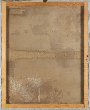 Na odwrocie l.g. fragment nalepki z tytułem obrazu (tuszem): Irus terrasse par U[lysse].